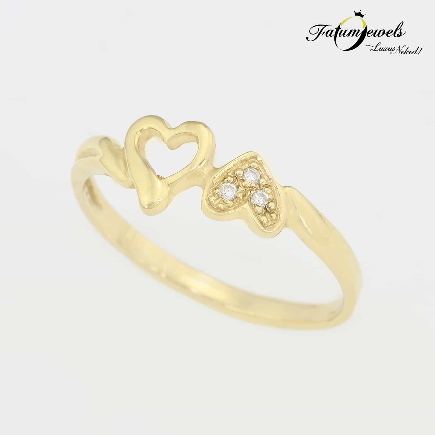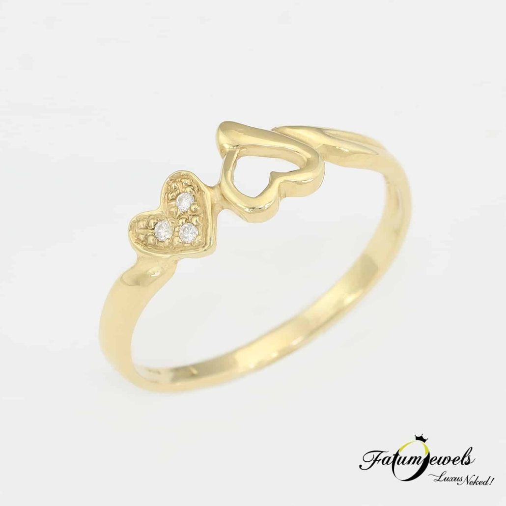 Ez az egyedi Fatumjewels gyémánt gyűrű szó szerint jól fog festeni az ujjadon. Mintha arannyal festette volna rá az ujjadra a Fatumjewels Galéria a szívformát. Egyedi és különleges, ráadásul hihetetlenül jó áron elérhető. A dupla szív üzenetét nem nehéz megfejteni, ebből adódóan akár eljegyzési ajándékként is kitűnő választás lehet.