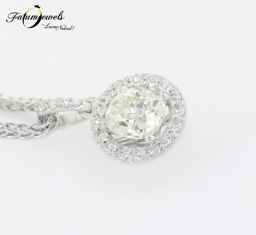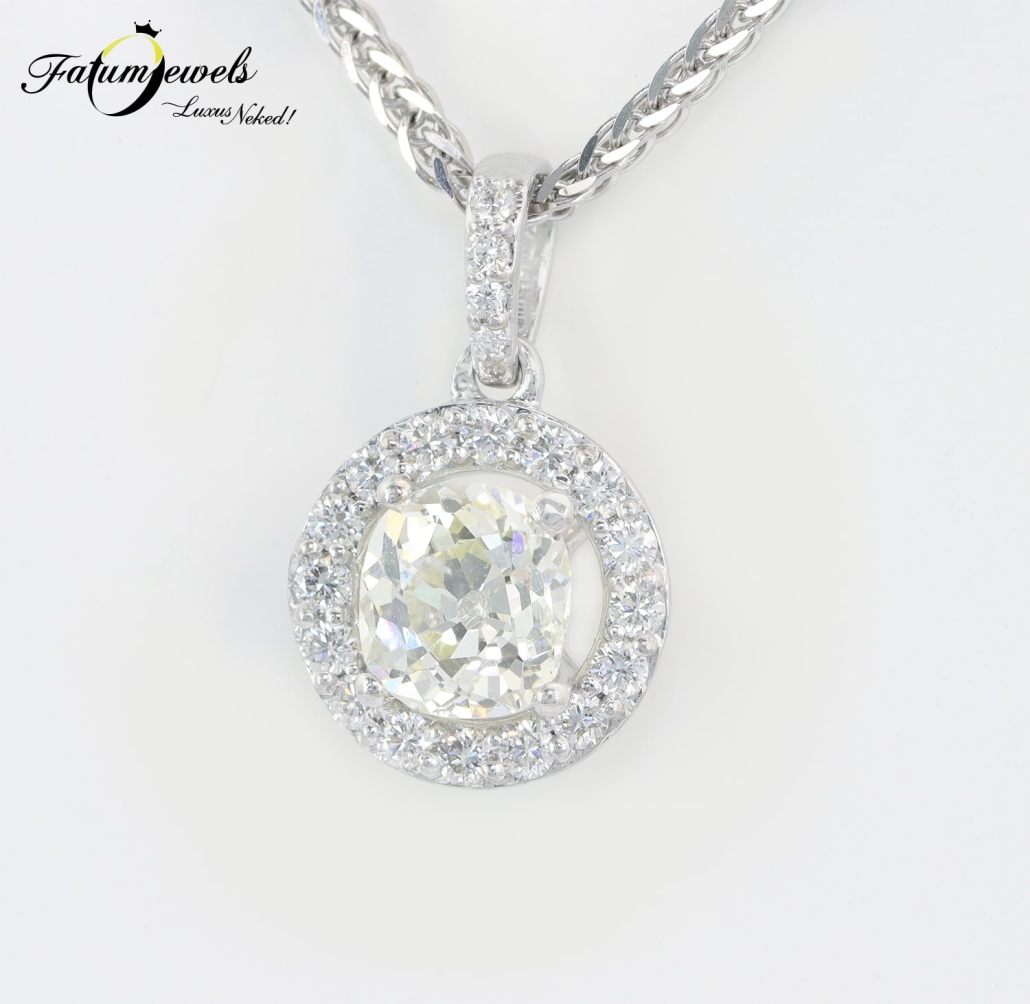 Sziporkázó gyémánt medál egy közel egykarátos gyémánt drágakővel a középpontban. Téged is elvarázsol a régi briliáns csiszolás? Mint egy ragyogó csillag, körülötte sugárzó fényudvarral. A Fatumjewels Galéria olyan hölgy számára tervezte ezt az egyedi gyémánt ékszert, aki ragaszkodik a hagyományos értékekhez és szeretné önmaga ragyogását kifejezni.