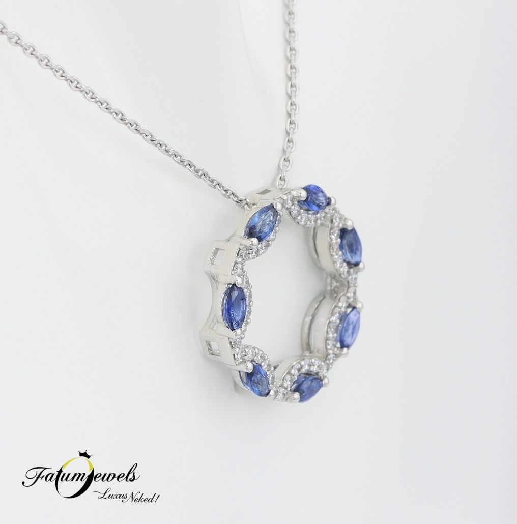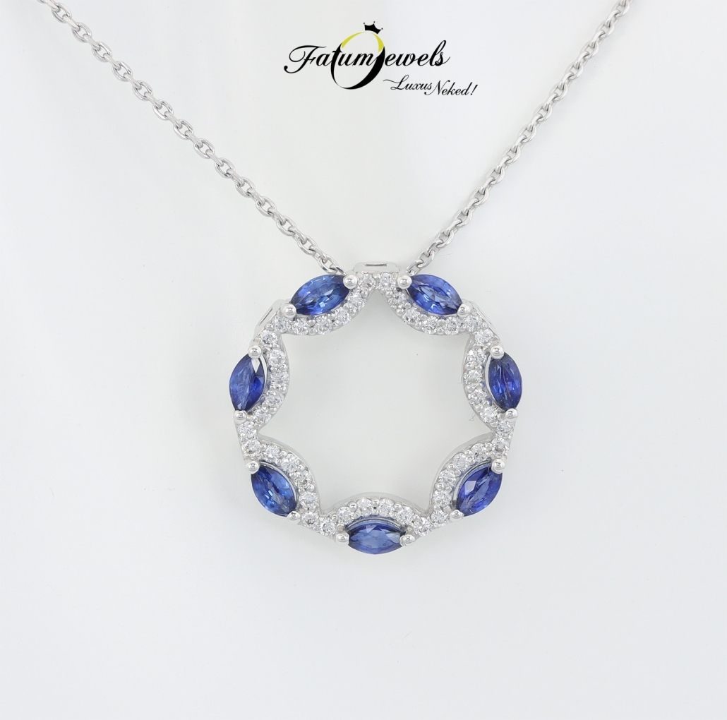 Fehérarany Gyémánt Zafír Medál Lánccal
