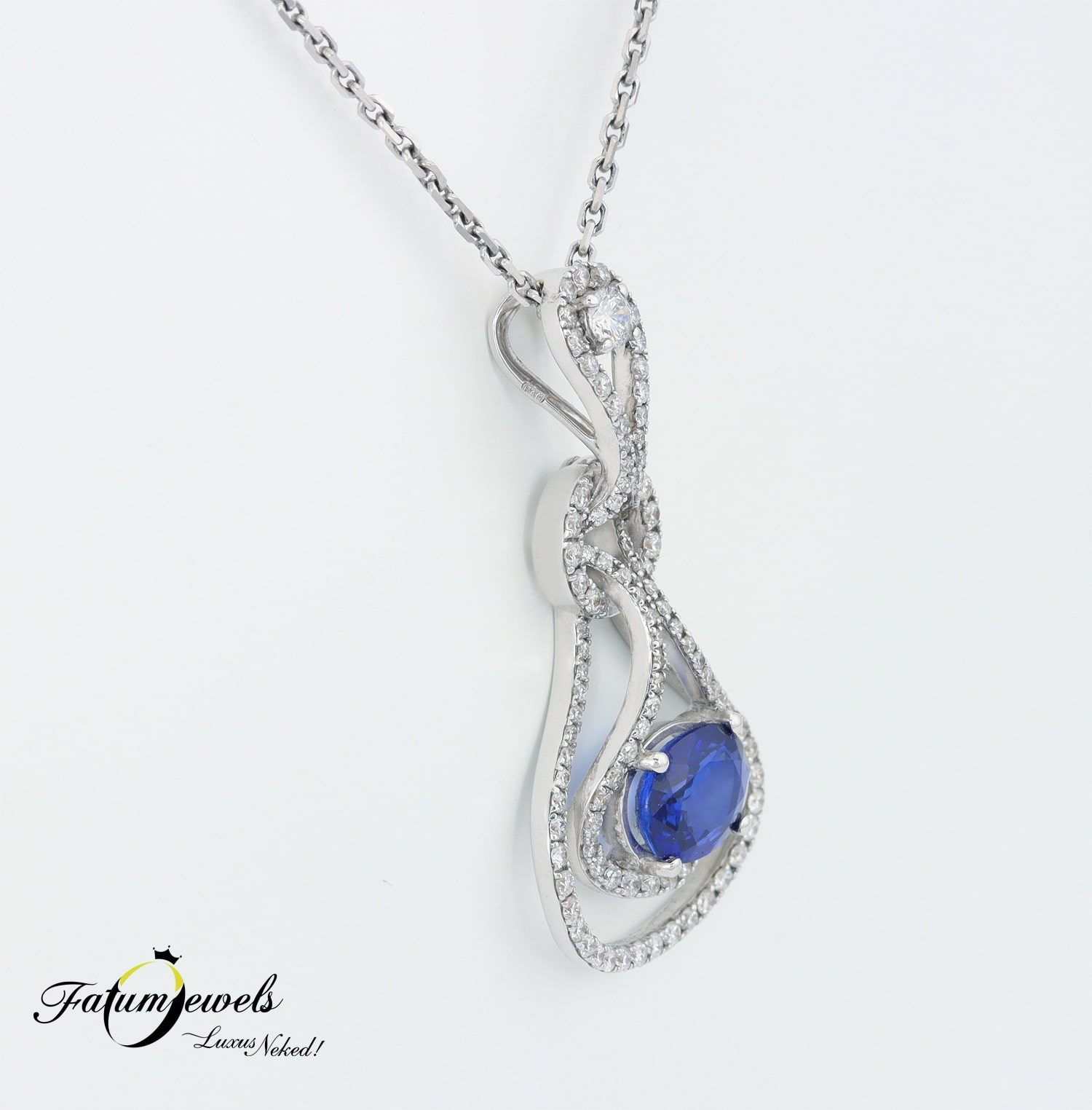 Fehérarany Gyémánt Kék Zafír Nyakék