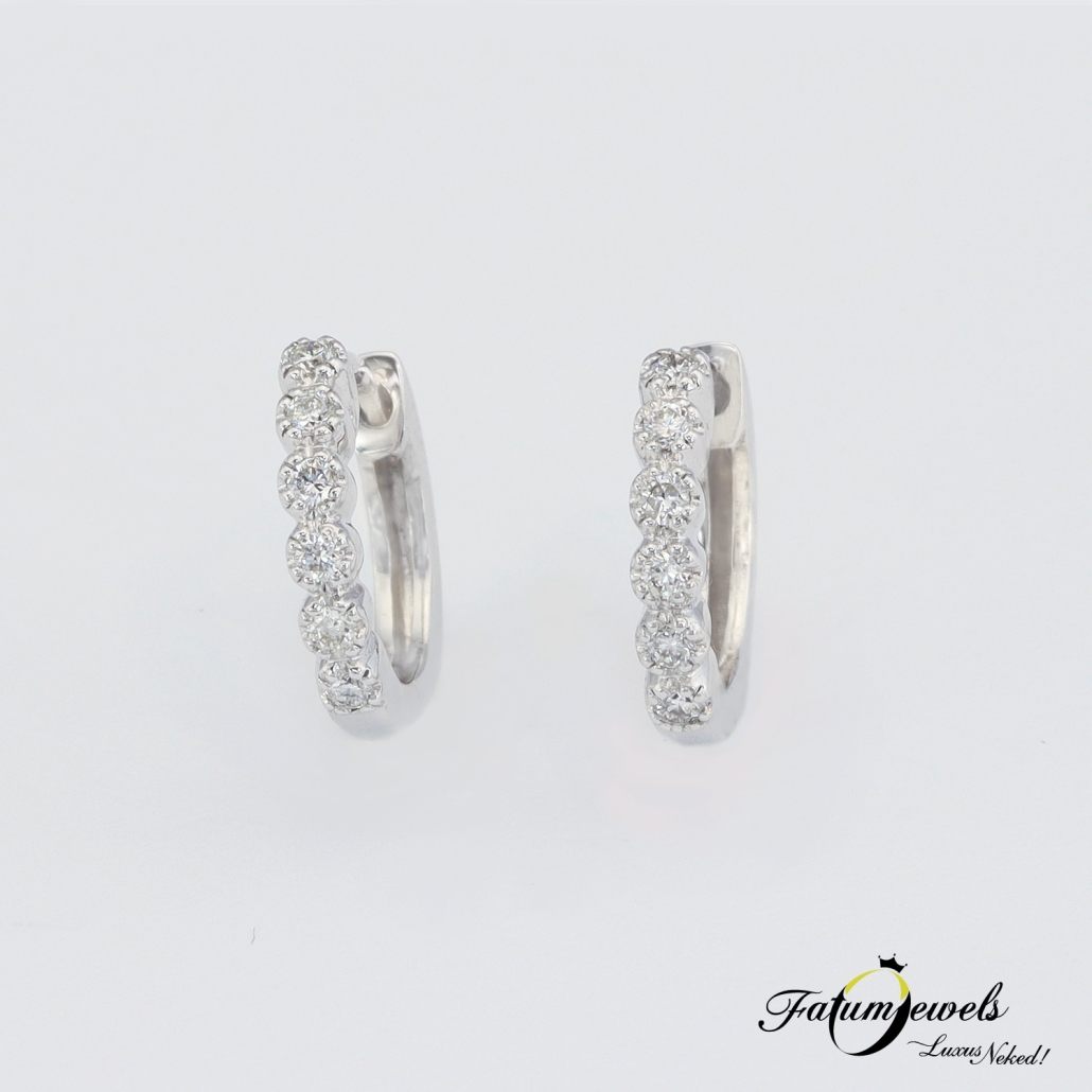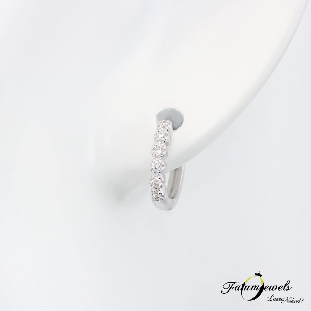 Valódi gyémántkoszorú, ráadásul kettő van belőle. Hat-hat briliáns gyémántból álló koszorú fülbevaló. Ezzel a fülbevalóval fizikailag is megerősítheted ragyogó mondanivalódat. A fülbevalót viselve úgy fog tűnni, mintha a gyémántok a levegőben lebegnének. A gyémánt tüze elképesztő hatással lesz arra, akihez éppen beszélsz. A Fatumjewels Galéria a Te számodra tervezte ezt az egyedi gyémánt karika fülbevalót.