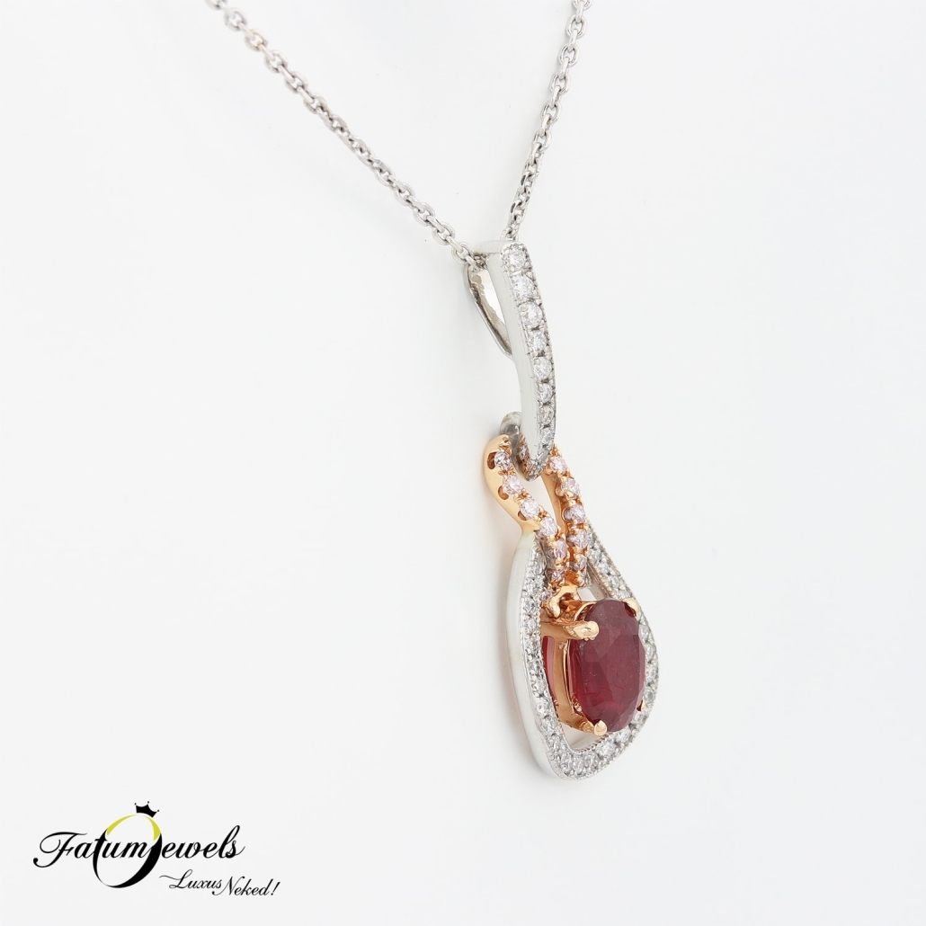 Fehérarany Gyémánt Rubin Medál Lánccal