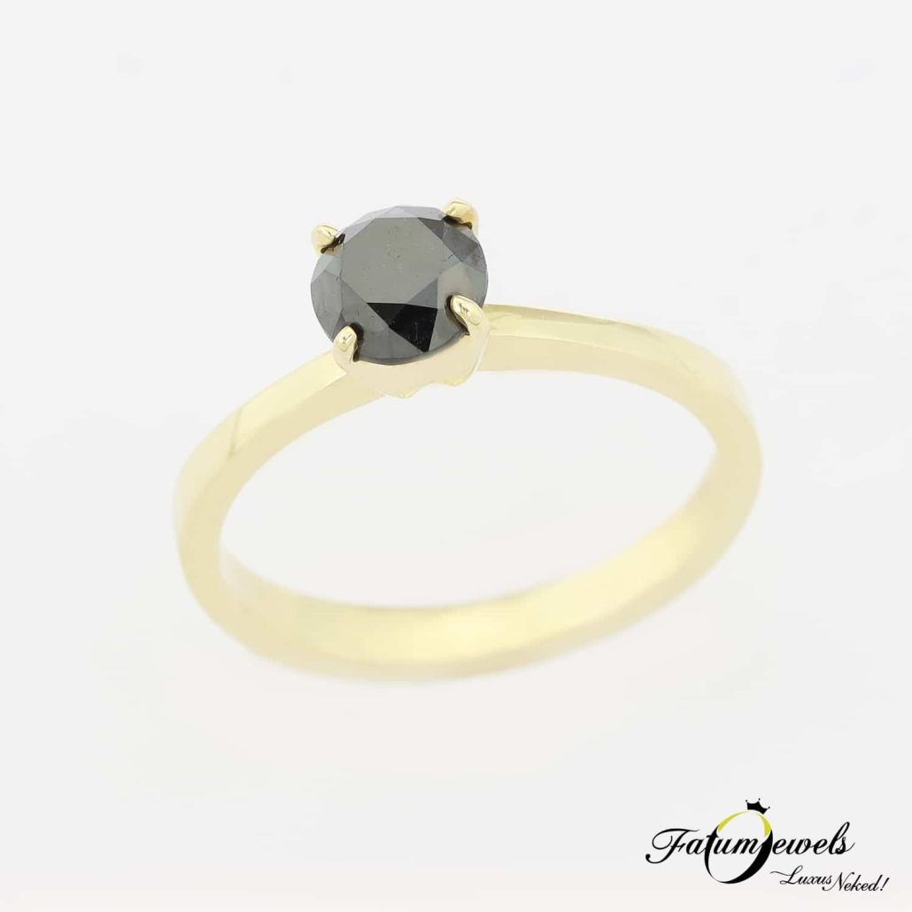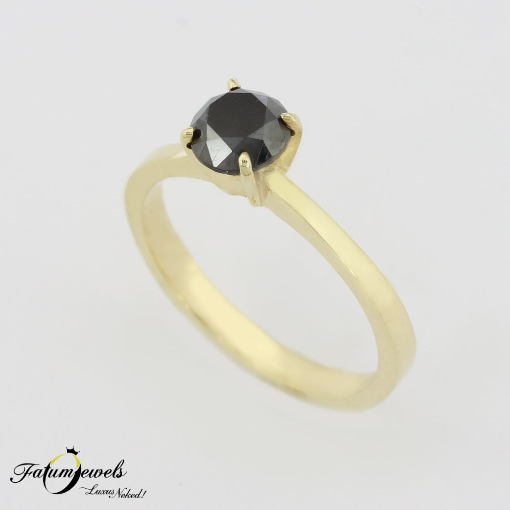 Erőteljes hatású ékszer stabil, magabiztos hölgyek számára tervezve. Kedvesedhez illő eljegyzési vagy egyéb ajándékot keresel? Ez a Fatumjewels fekete gyémánt szoliter gyűrű erőt sugároz, emellett a sárga arany és a fekete gyémánt szolid, kedves színhatást fejt ki. Ráadásul a fekete briliáns gyémánt mérete is felettébb lenyűgöző. Letisztult, tökéletes szépség.