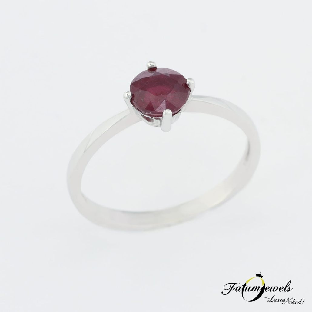 Erőteljes színhatás, erőteljes formák olyan hölgy számára tervezve, aki tudja, mit akar az élettől, és azt is, hogyan fogja ezt elérni. Magabiztos hölgy számára keresel egyedi ékszert? Akár eljegyzési ajándékként is tökéletes ez a Fatumjewels tervezésű szoliter rubin gyűrű. A mélyvörös kerek rubin elkápráztat, a fehérarany pedig olyan kontrasztot ad, hogy szinte érzed a drágakő erejét.