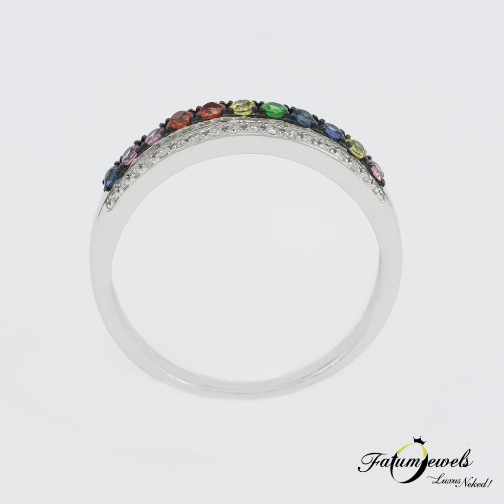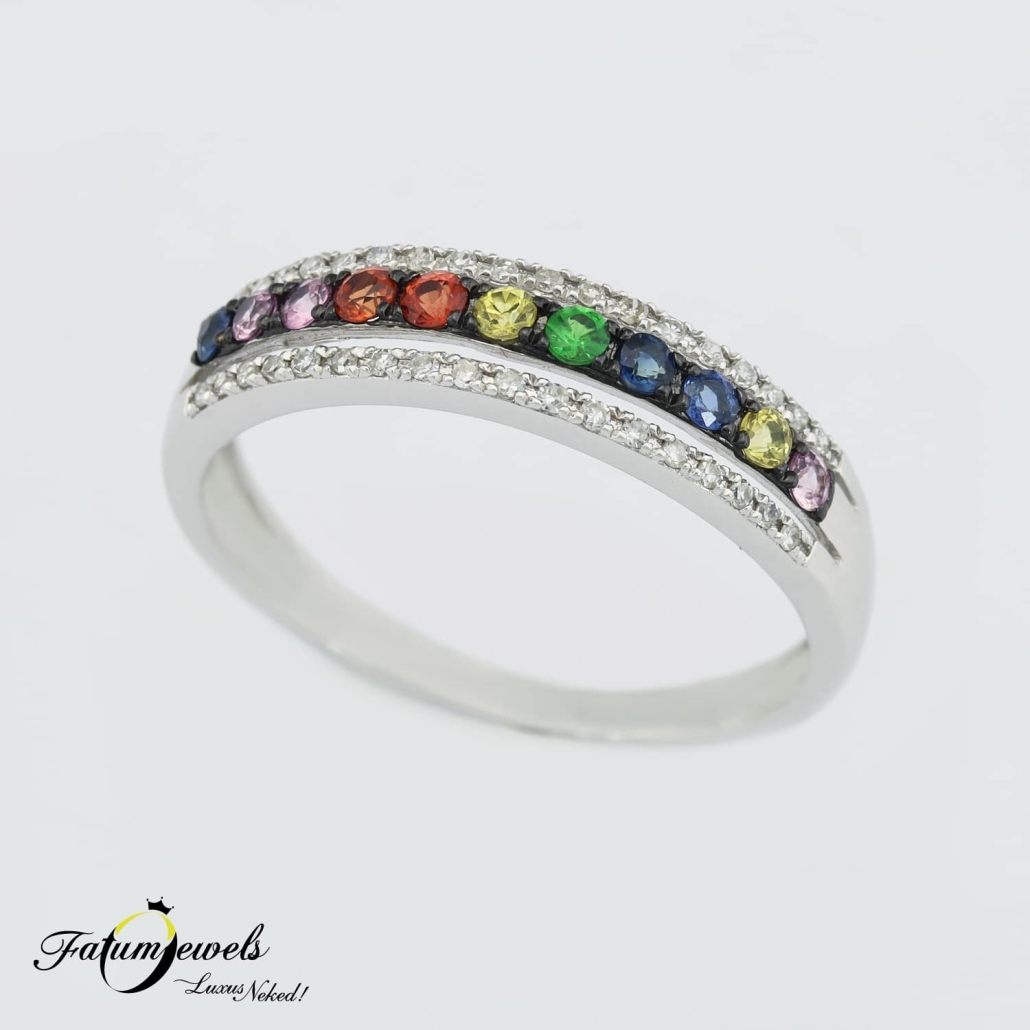 Fehérarany Gyémánt Színes Drágakő Gyűrű