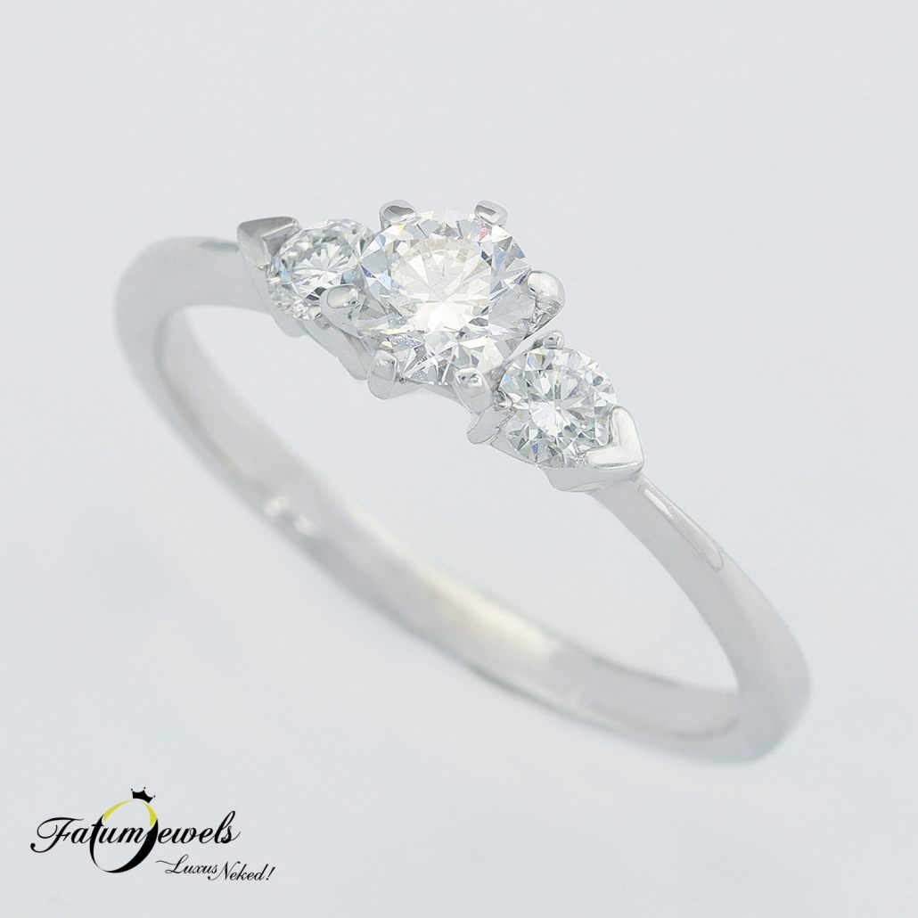 A mágikus hármas szám végigkíséri életünket, így egy Fatumjewels Galéria révén tervezett ékszerből sem maradhat ki. Három briliáns gyémánttal ékített gyűrű, mely tökéletes eljegyzési gyűrű lehet, ha valami igazán értékeset keresel. A központi gyémánt HRD certifikáttal rendelkezik. Nálunk a mennyiség és a minőség nem mehet egymás rovására, ez a gyémántgyűrű a bizonyíték.