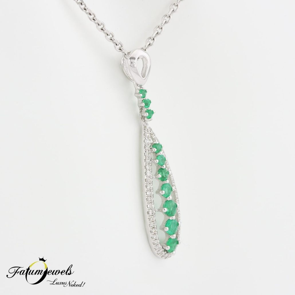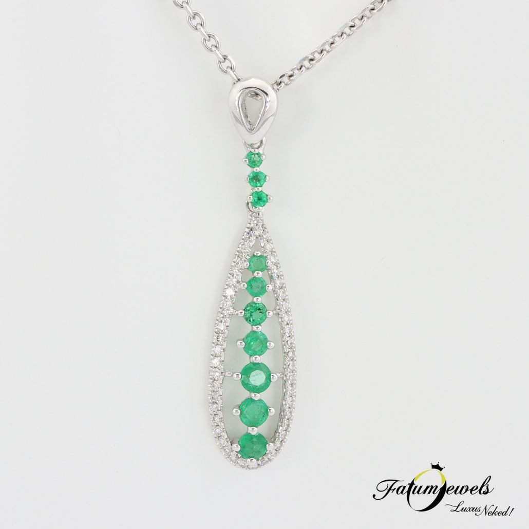 Fehérarany Gyémánt Smaragd Medál Lánccal