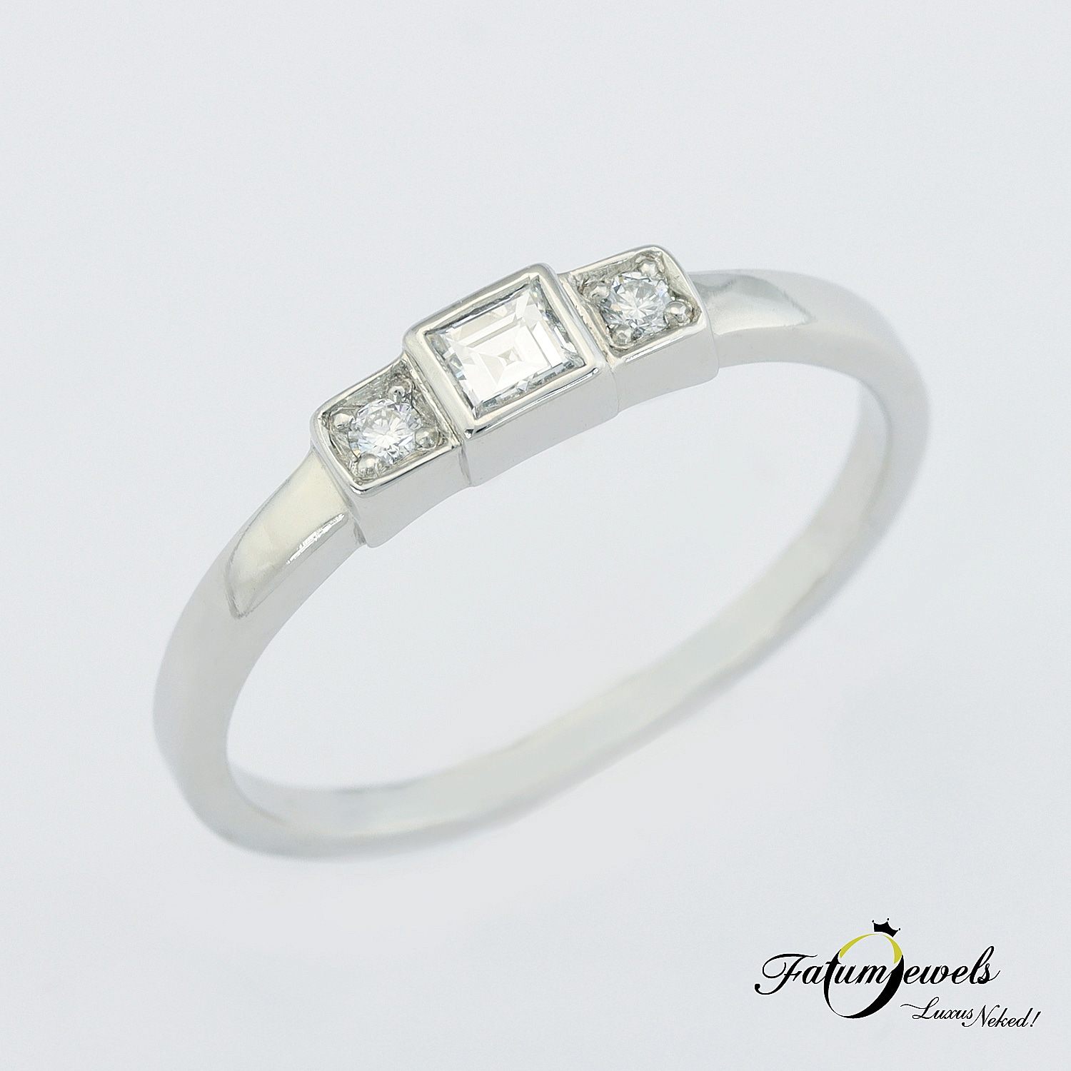 Az önbizalom semmi mással össze nem téveszthető fénye teszi igazán különlegessé ezt a modern fehérarany gyűrűt, amelyben páratlanul ragyognak a gyönyörű princess és briliáns csiszolással tökéletesre formált gyémántok, melyek viselőjük páratlan értékeit is jelképezik. Ha ezt választod, mindennap emlékeztet majd arra, hogy milyen erős, értékes, és gyönyörű vagy, a gyémántok pedig csak erősítik a benned rejlő értékeket, amelyek minden nőben ott rejtőznek, de nem mindenki képes felszínre hozni őket. Légy rá büszke, hogy te azok közé tartozol, akik ezt már megtették, és viseld mindennap ezt a modern gyémántgyűrűt.