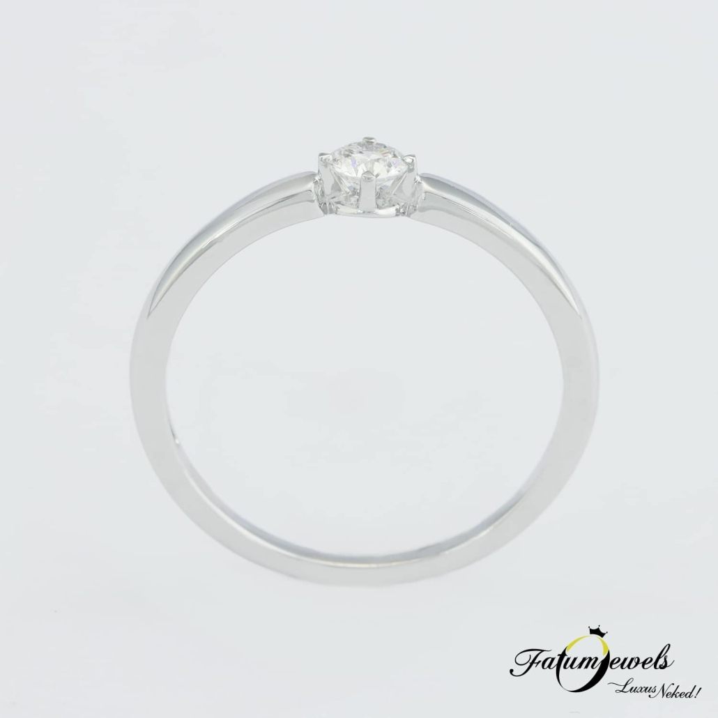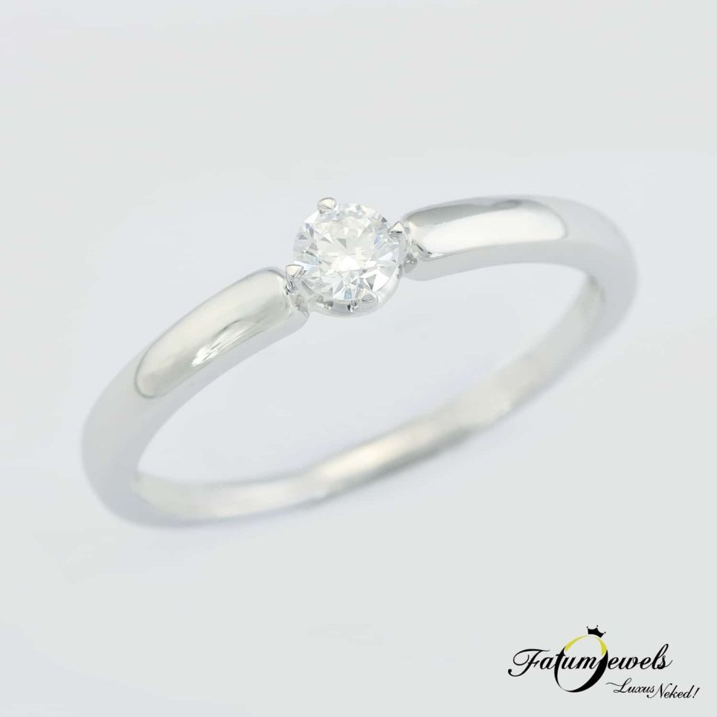 A fehérarany önmagában is a megtestesült nemes elegancia és finomság, amelyet csak hatványozni lehet, ha egy gyönyörű briliáns csiszolású gyémánttal kerül egy ékszerbe. A nemesfém többféle felületkezelési módjainak eredményeként, fényesre csiszolt felső ív vezeti a tekintetet a fehérarany gyémántgyűrű drágakövére, míg a gyűrű többi része matt fehér árnyalatban asszisztál ahhoz, hogy még inkább hangsúlyos lehessen a ragyogó gyémánt. Eljegyzési gyűrű szerepébe is bújhat, vagy egyéb nagy jelentőségű életeseményre emlékeztető ragyogó ékszer is lehet, amely a hétköznapokat is képes varázslatossá tenni, és a nagyestélyidhez is tökéletesen illik.