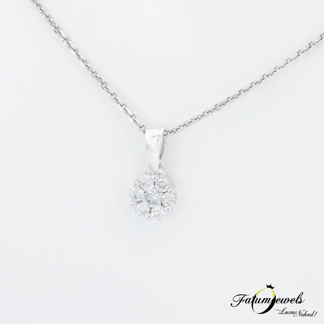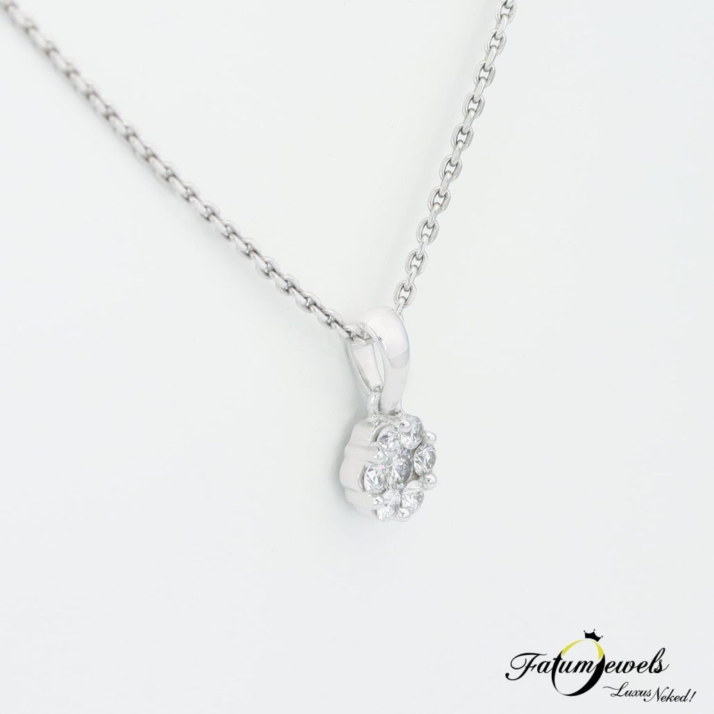 Romantikus lelkületű hölgyek figyelmébe ajánlott ez a fehérarany gyémántvirág medál lánccal, mely megtalálható a Fatumjewels Galéria kínálatában. A briliáns gyémántok ragyogással töltik meg a hétköznapok szürkeségét. Csempéssz romantikát, és ragyogást a mindennapokba a Fatumjewels Gyémántvirág medál formájában.