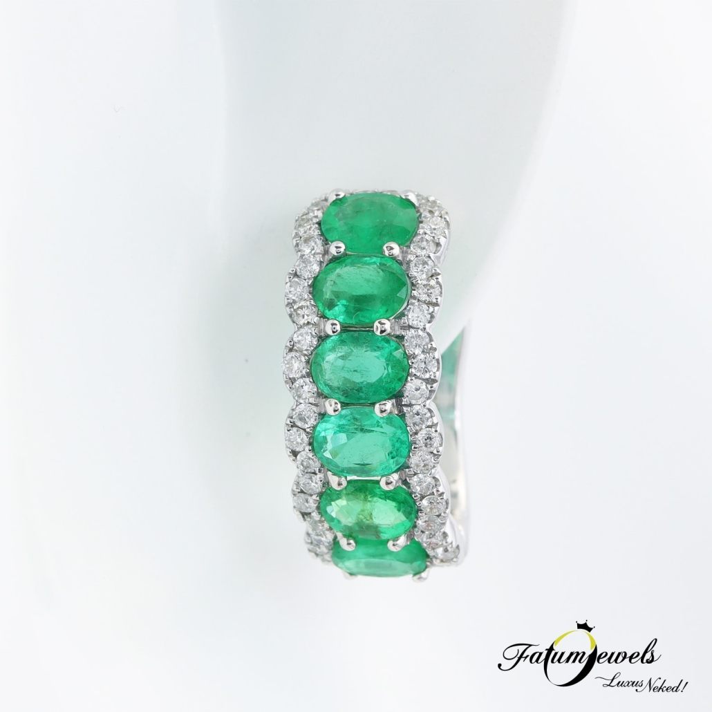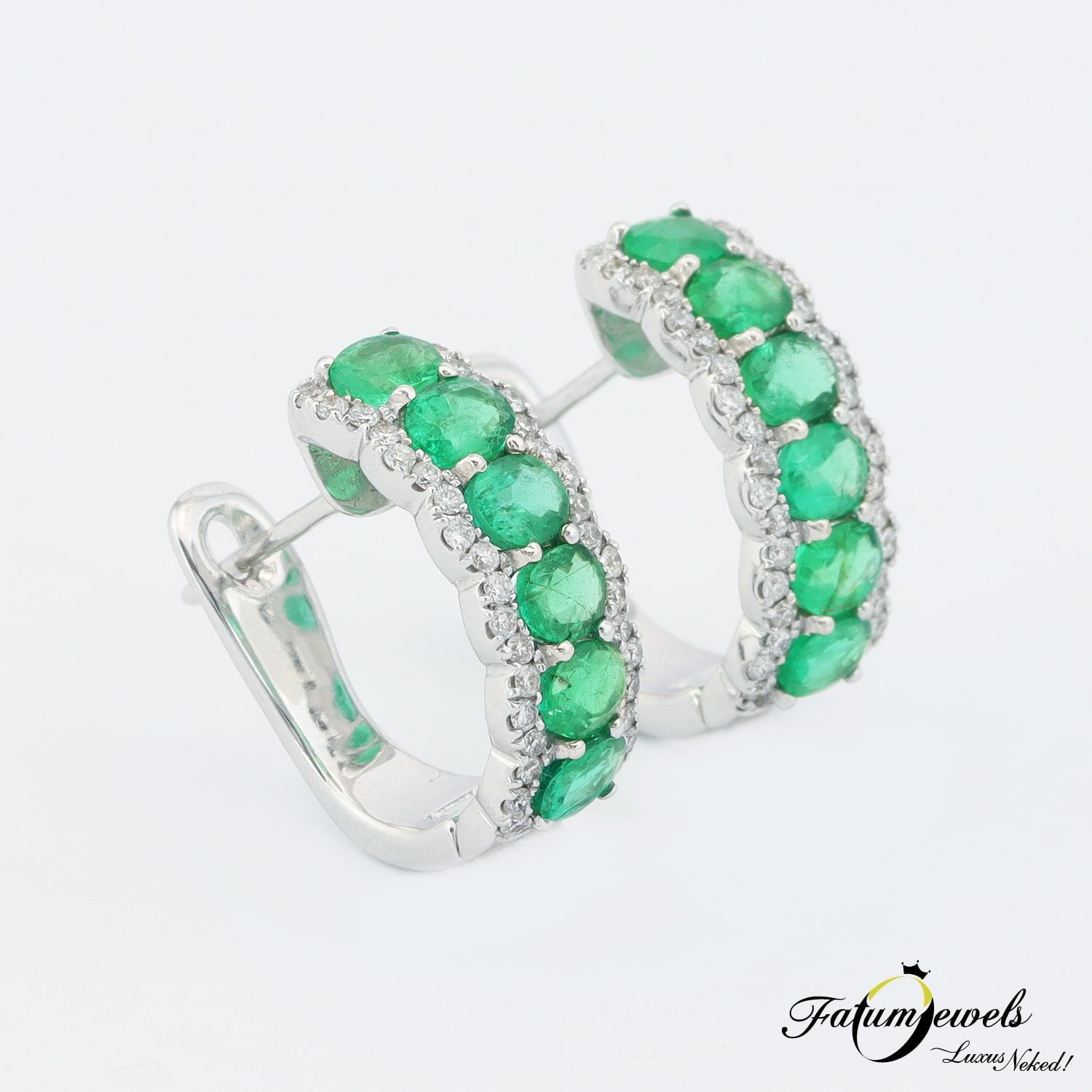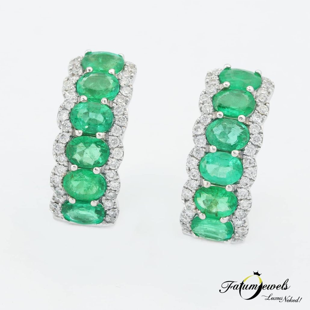 A szimmetrikusan egymás mellé illesztett ovális smaragdok mindig kiemelkedő látványt nyújtanak, főként, ha a fülbevaló széle  gyémántfényben szikrázik. A Fatumjewels Galéria modern hölgyek számára tervezte ezt a fülbevalót, melynek központi éke az összesen 2,33 karát ovális csiszolású smaragd, és az összesen 0,48 karát briliáns gyémánt amely a smaragdot öleli körbe.
