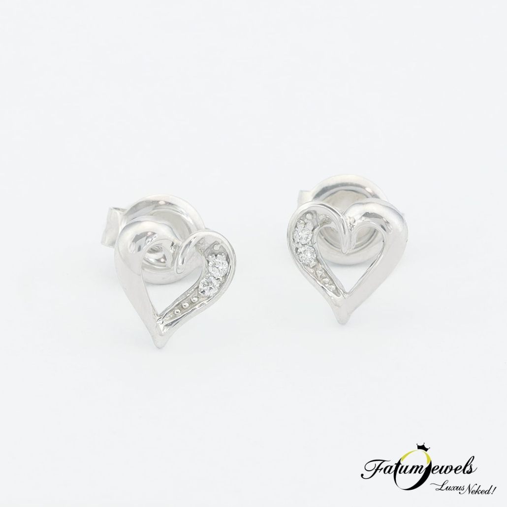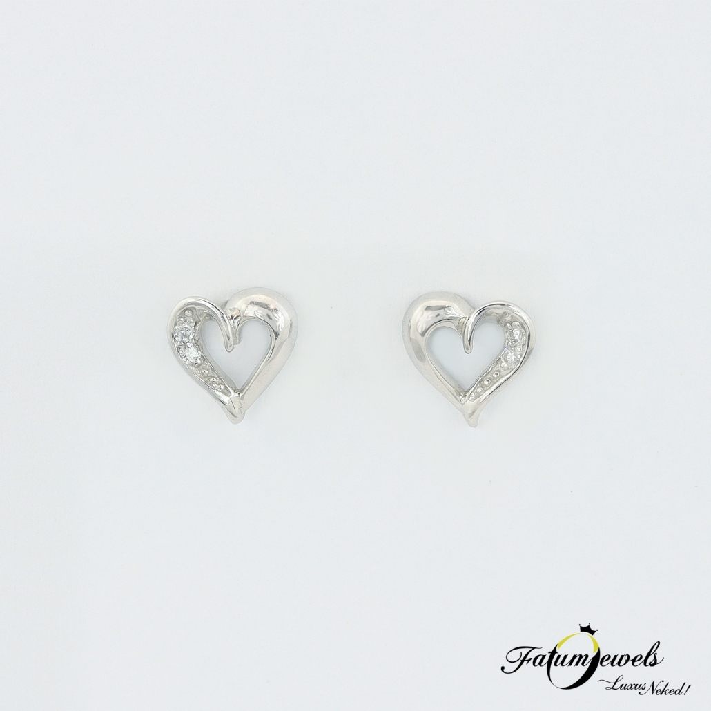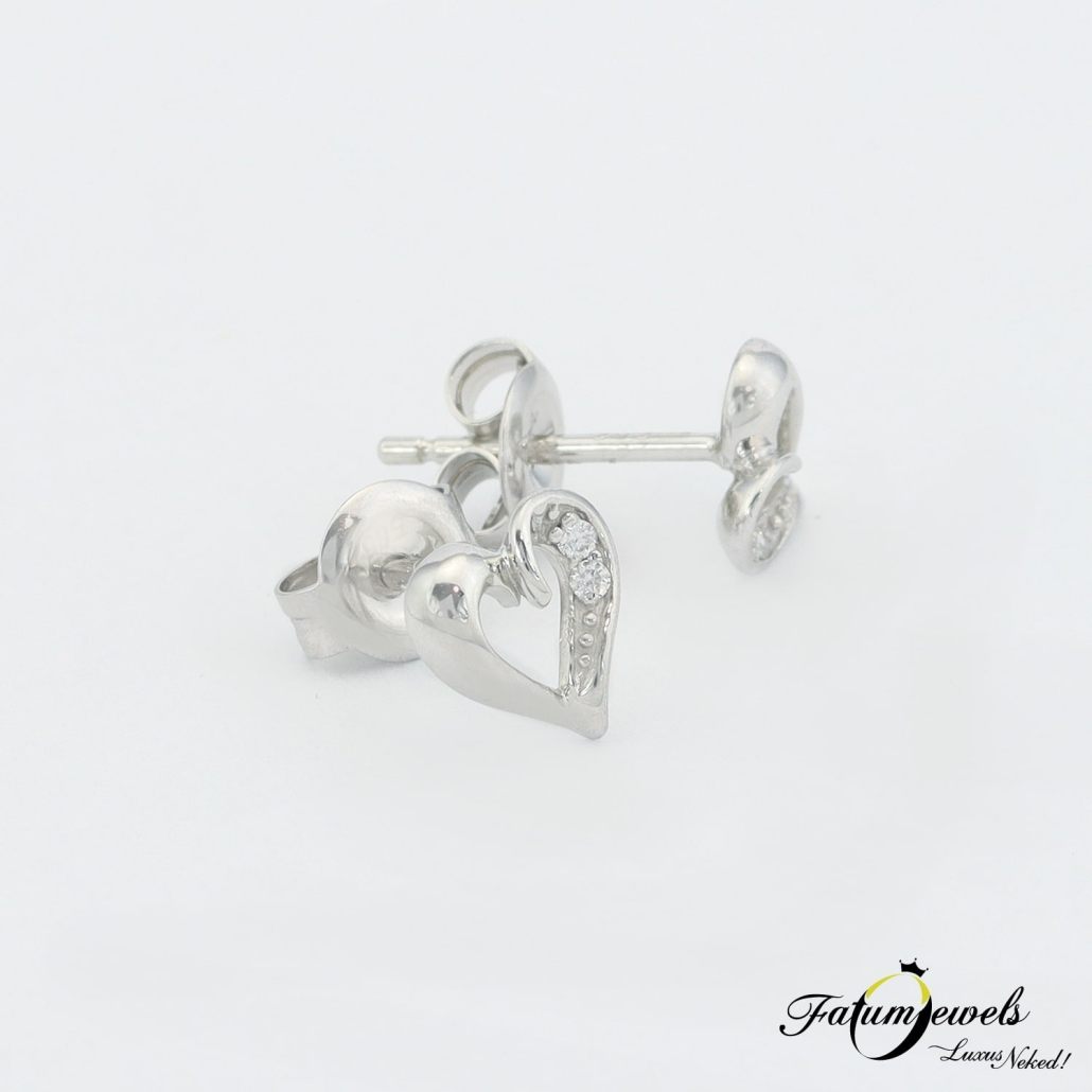 A Fatumjewels Galéria egyszerűségében is különleges formát hozott létre egy fehérarany gyémánt fülbevaló formájában, mely négy briliáns gyémánt drágakő díszítést kapott. A szív alakú fülbevaló légies kialakítású, és a külső ívek csillogását az oda foglalt gyémántok biztosítják. A szív a szeretet, a gyémánt az örökkévalóságot szimbolizálta. Fatumjewels tervezésű fehérarany fülbevaló.