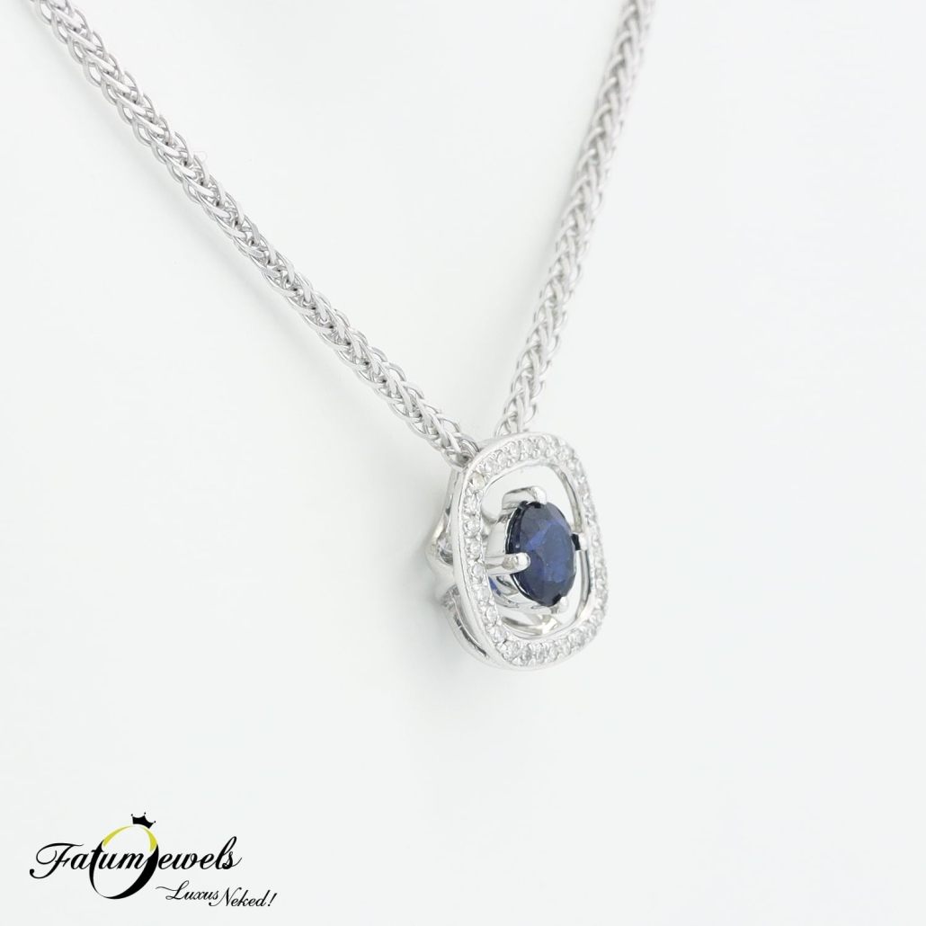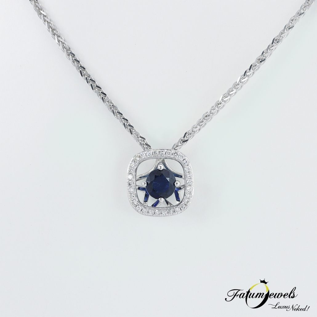 Fehérarany Gyémánt Kék Zafír Medál Lánccal