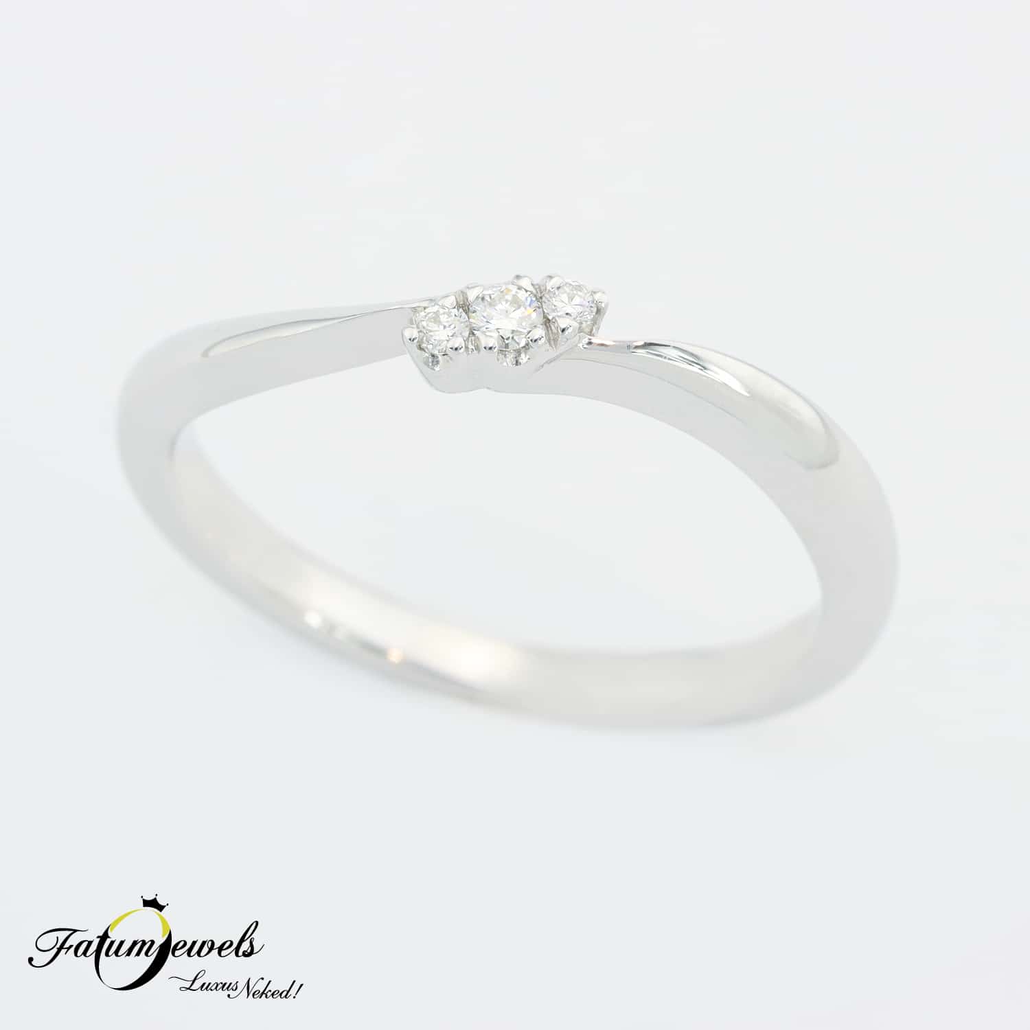 Úgy kapcsolódnak egymáshoz az eljegyzési gyűrű jobb és bal oldalai a gyémántok által, hogy az hűen fejezi ki a kettőtök között lévő szoros köteléket. Két identitás, melyek tökéletesen összeillenek. A Fatumjewels Galéria kifejezetten olyan eljegyzéshez tervezte ezt a gyémántgyűrűt, ahol a felek szeretnék kifejezni azt a szoros köteléket, ami köztük van.