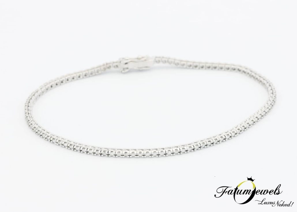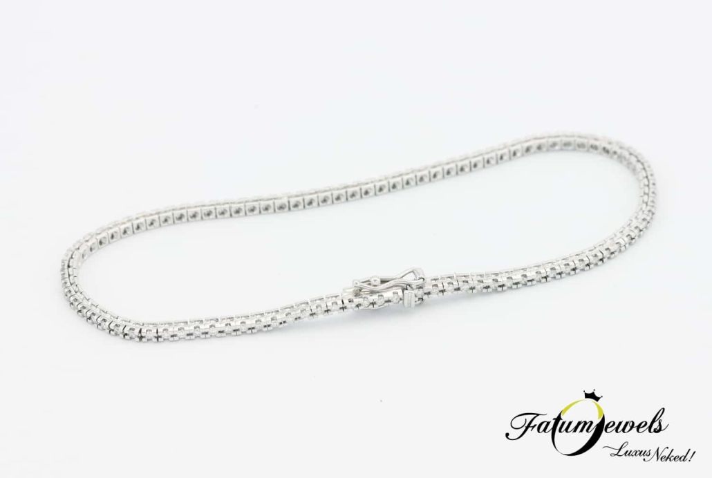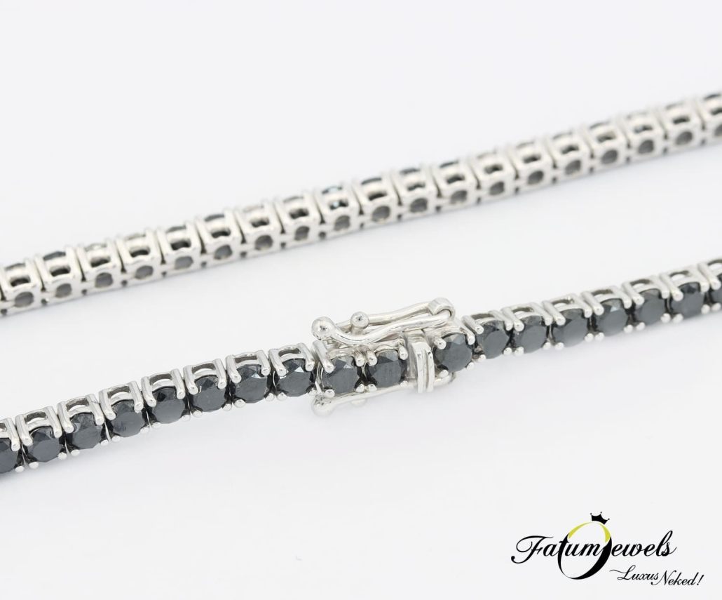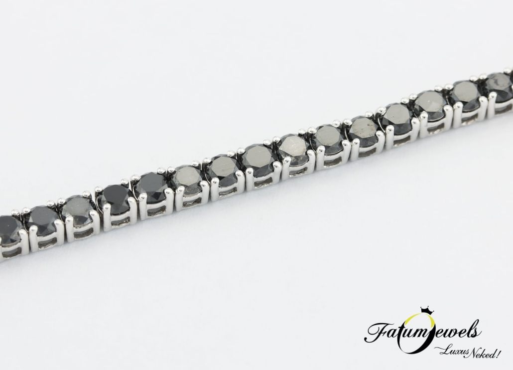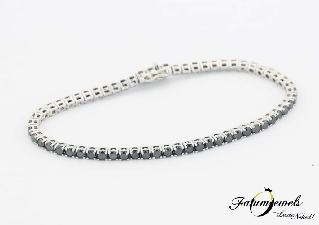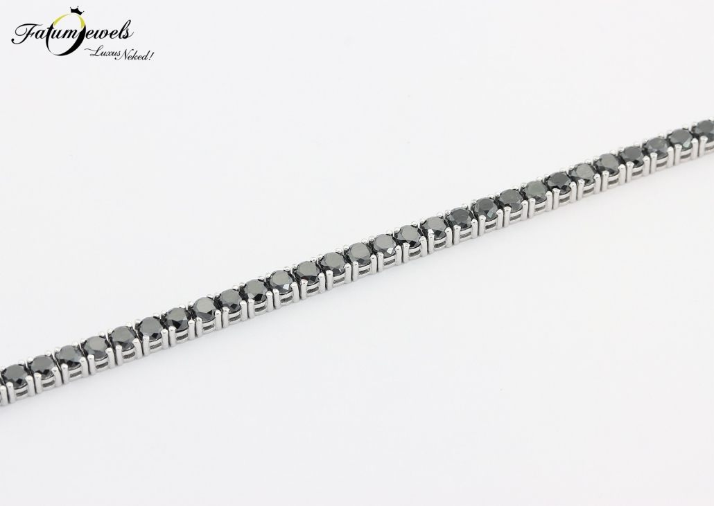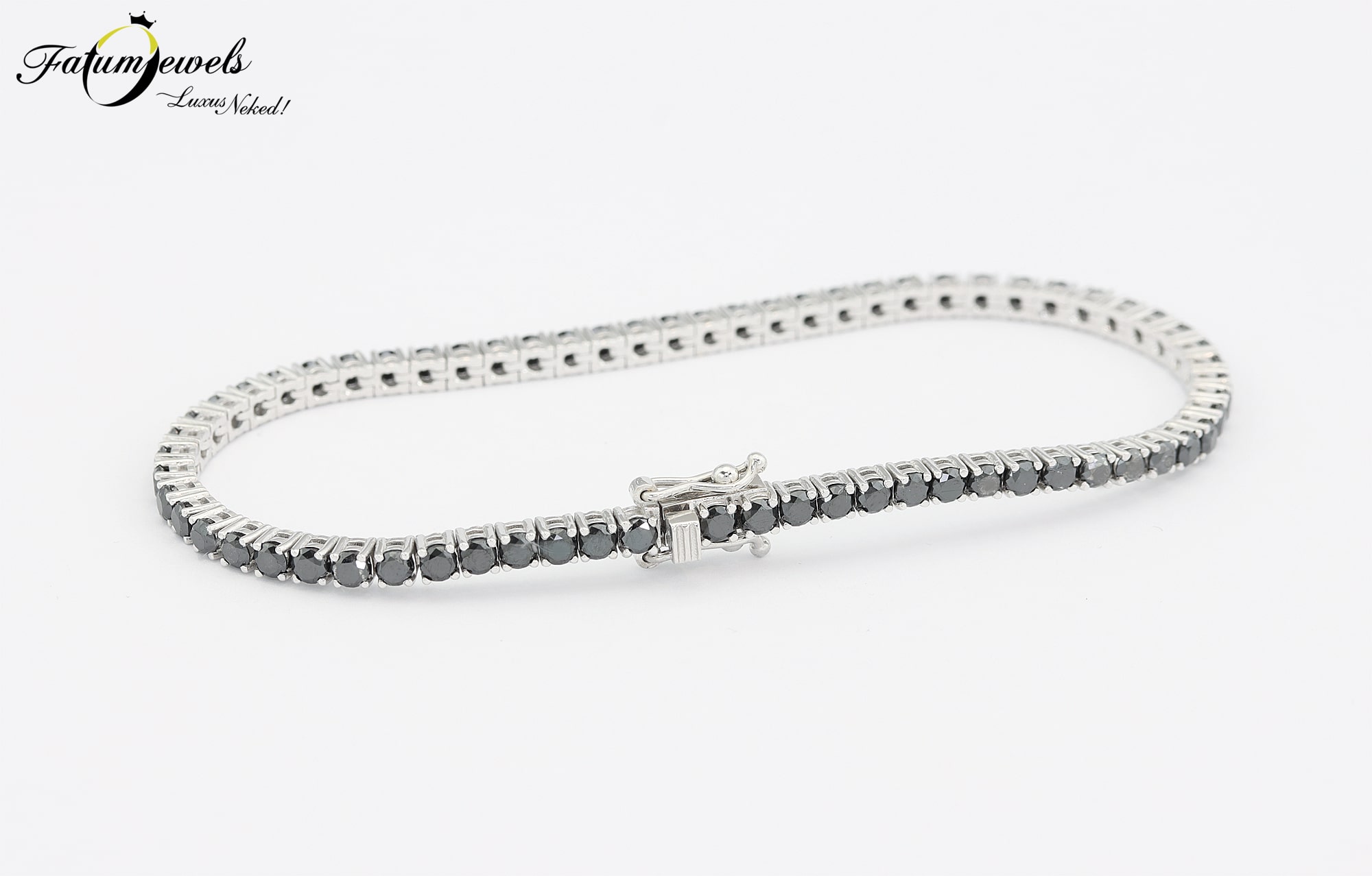 Ez a fehérarany fekete gyémánt tenisz karkötő egy olyan különleges darab, amely túlmutat a megszokott elegancián. Azoknak a hölgyeknek készült, akik nem elégszenek meg az átlagossal, és egyedi stílusukkal mindig kiemelkednek a tömegből.