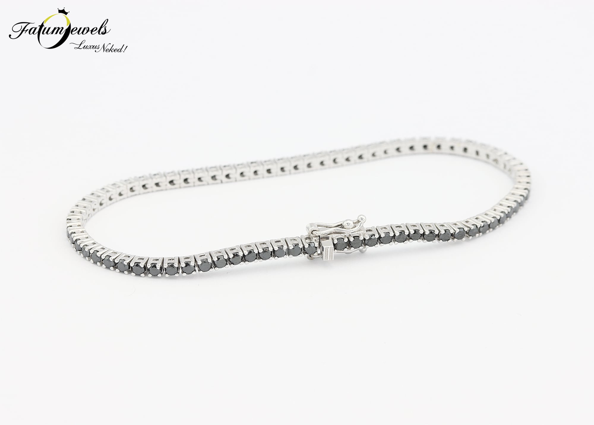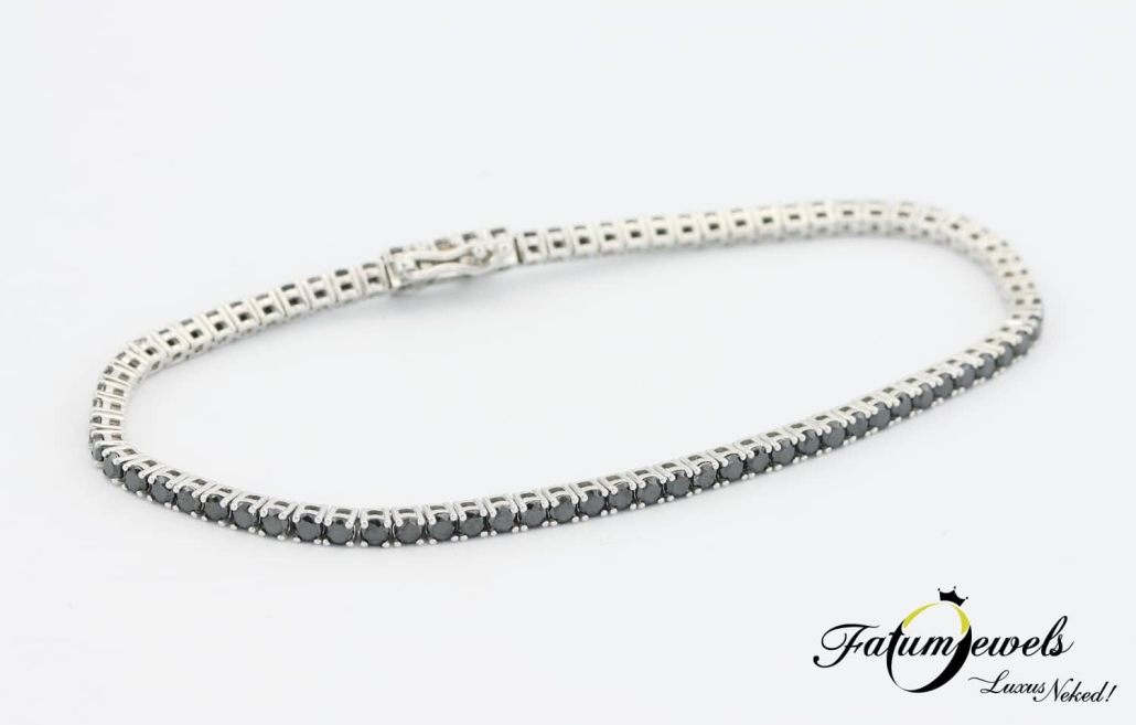 Ez az ékszer nem csupán különleges drágaköveivel hódítja meg a szíveket, hanem azzal is, hogy egyúttal egy olyan időtálló darab, amelyben a klasszikus elegancia és a modern luxus dizájn ad egymásnak randevút. Vond be minden mozdulatodat éteri csillogással ezzel a fehérarany fekete gyémánt tenisz karkötővel.