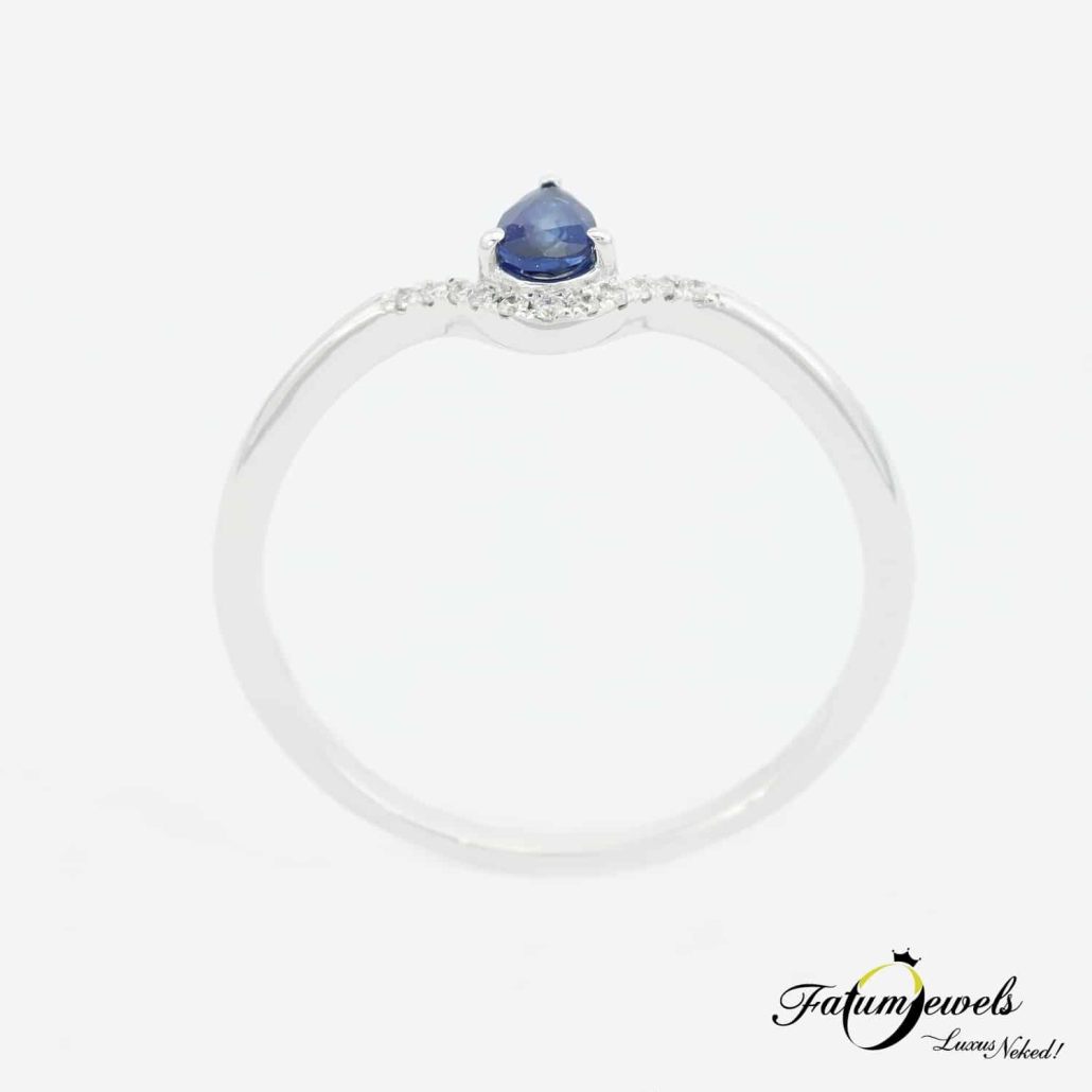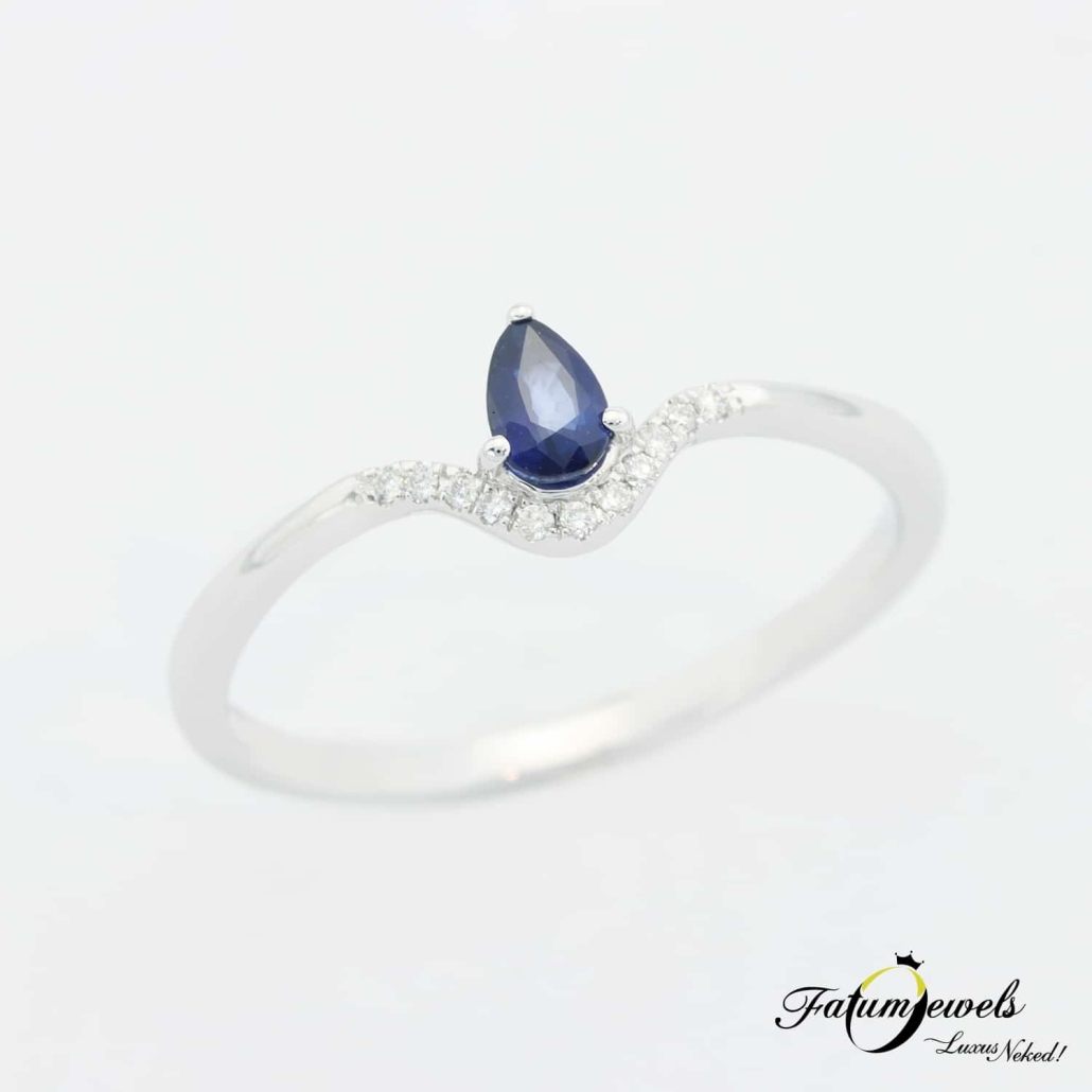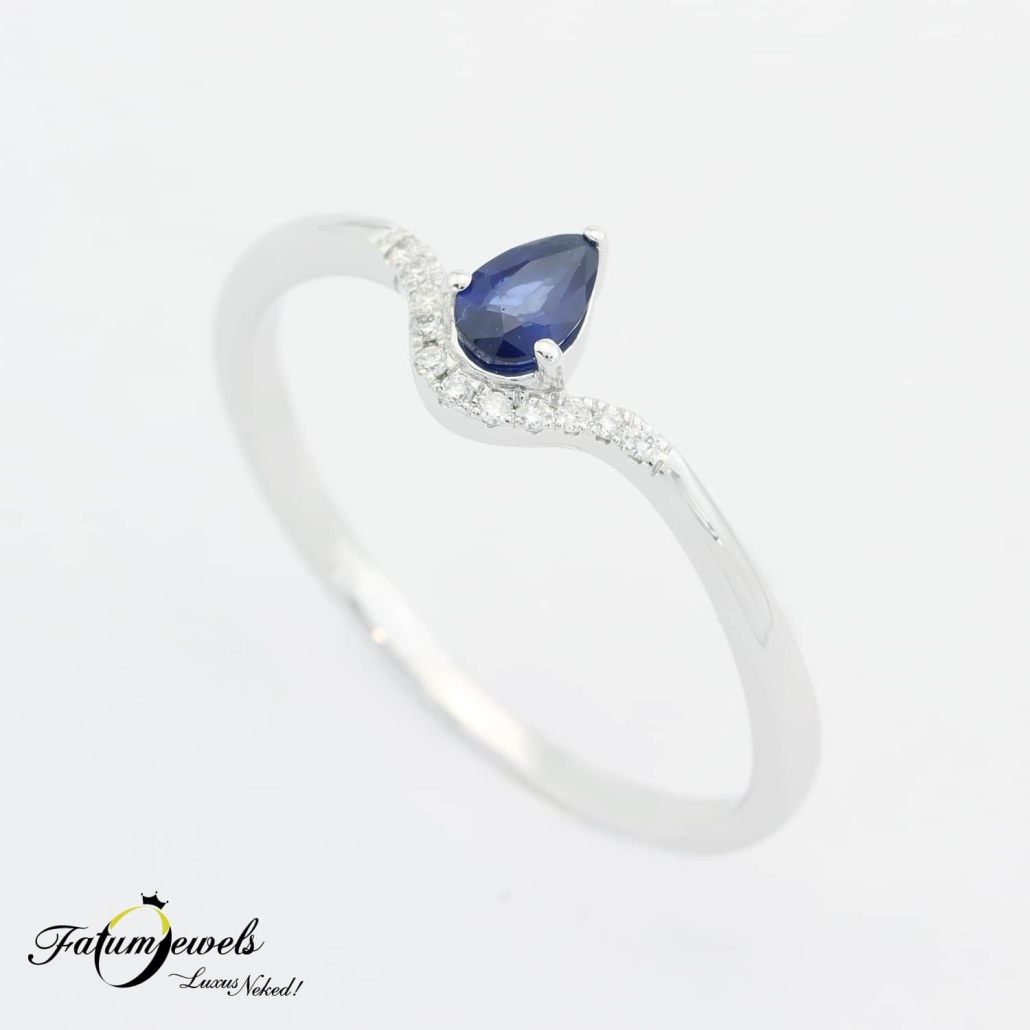 Fehérarany Gyémánt Csepp Zafír Gyűrű