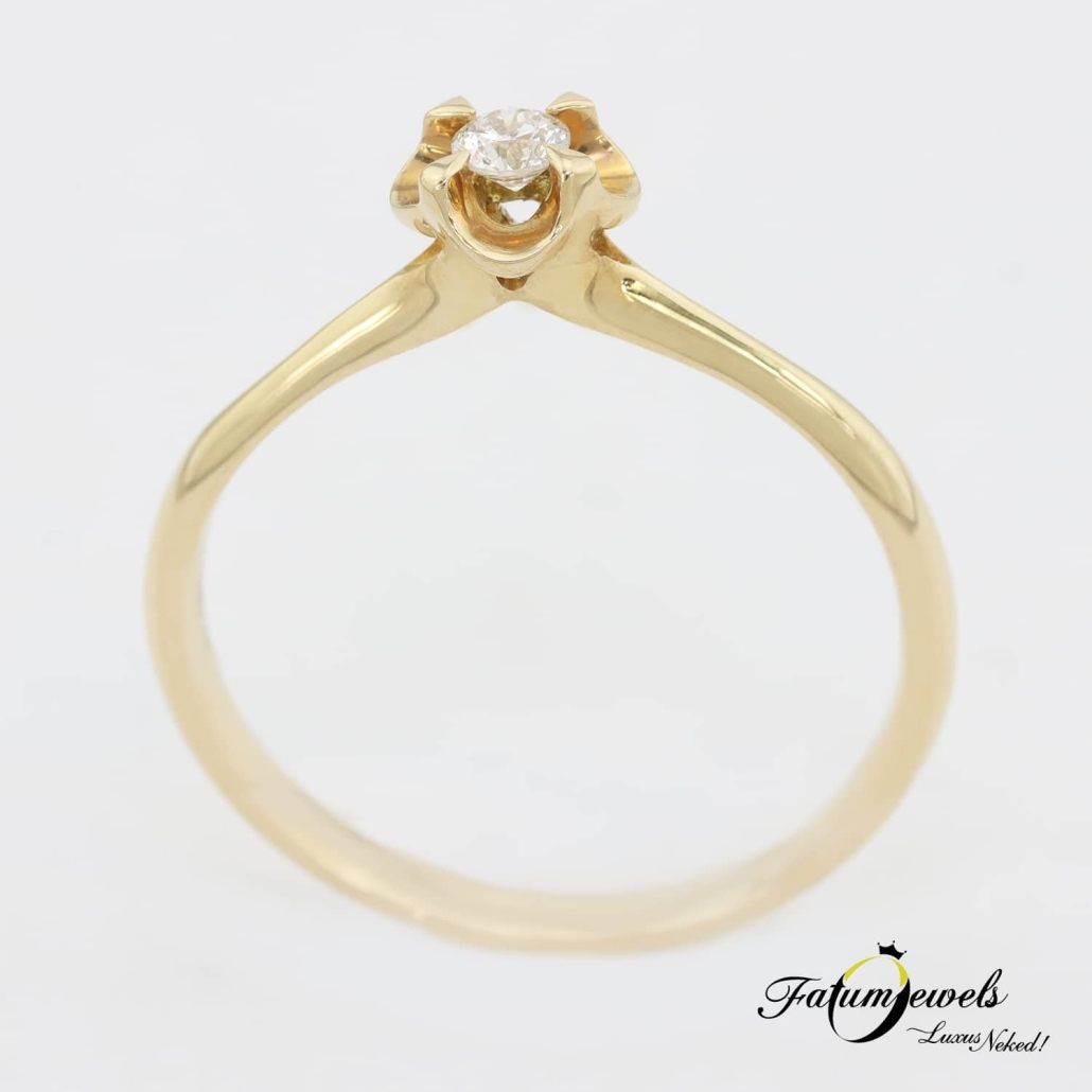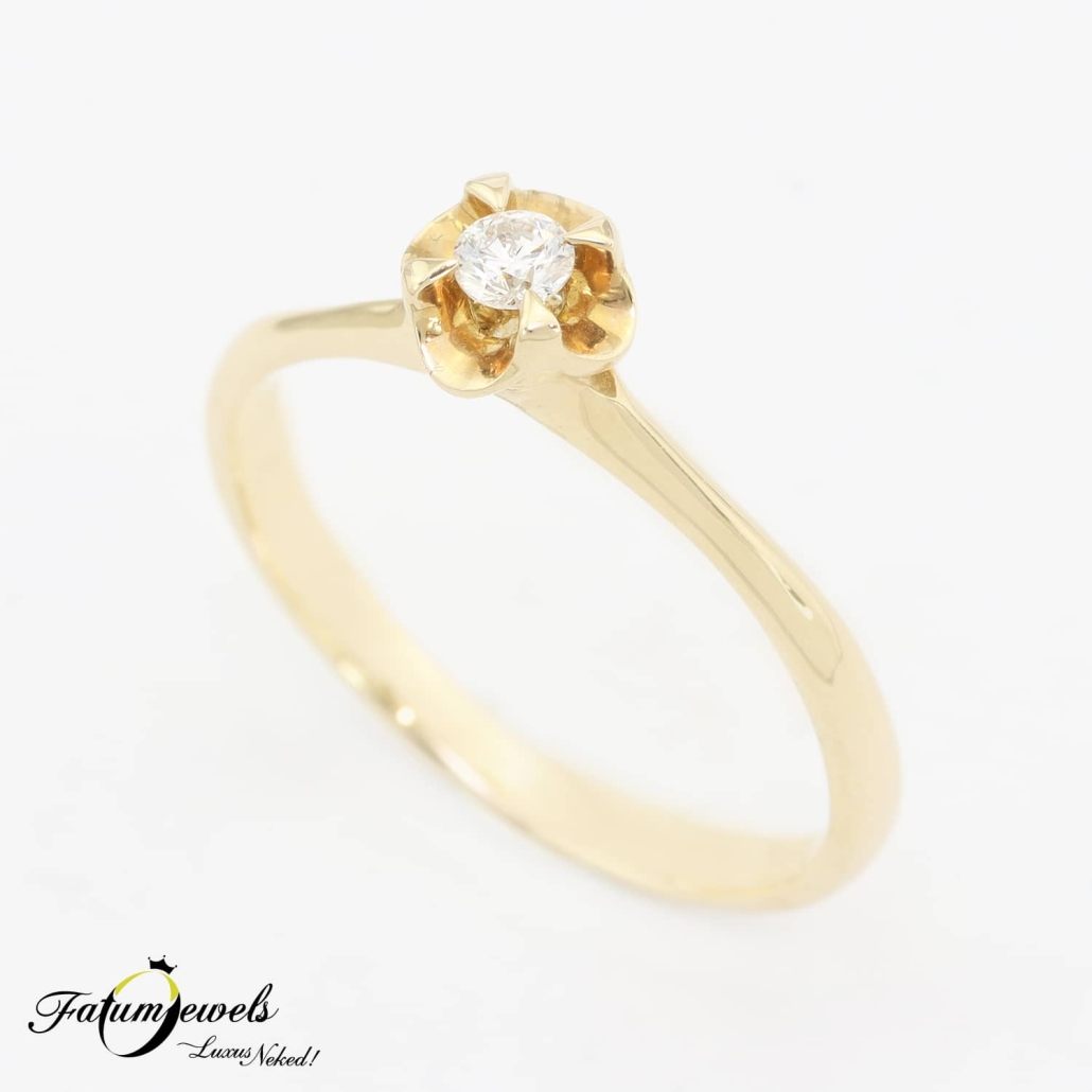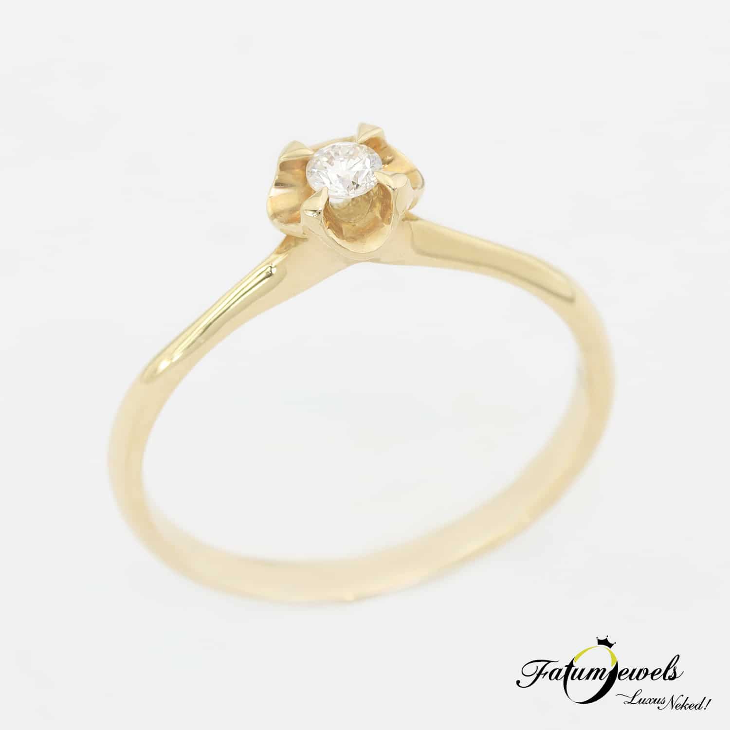 Virágformába rendeződő foglalattal és középen gyémánttal díszített eljegyzési gyűrű romantikus hölgyeknek. Ha párod romantikus lelkületű, akkor ez az eljegyzési gyűrű elnyeri tetszését, melynek a közepében egy 0,083 karátos briliáns gyémánt alkot virágot a szirmokat formázó foglalattal. Fatumjewels eljegyzési gyűrű tervezés a romantika jegyében a Fatumjewels Galéria kínálatában.