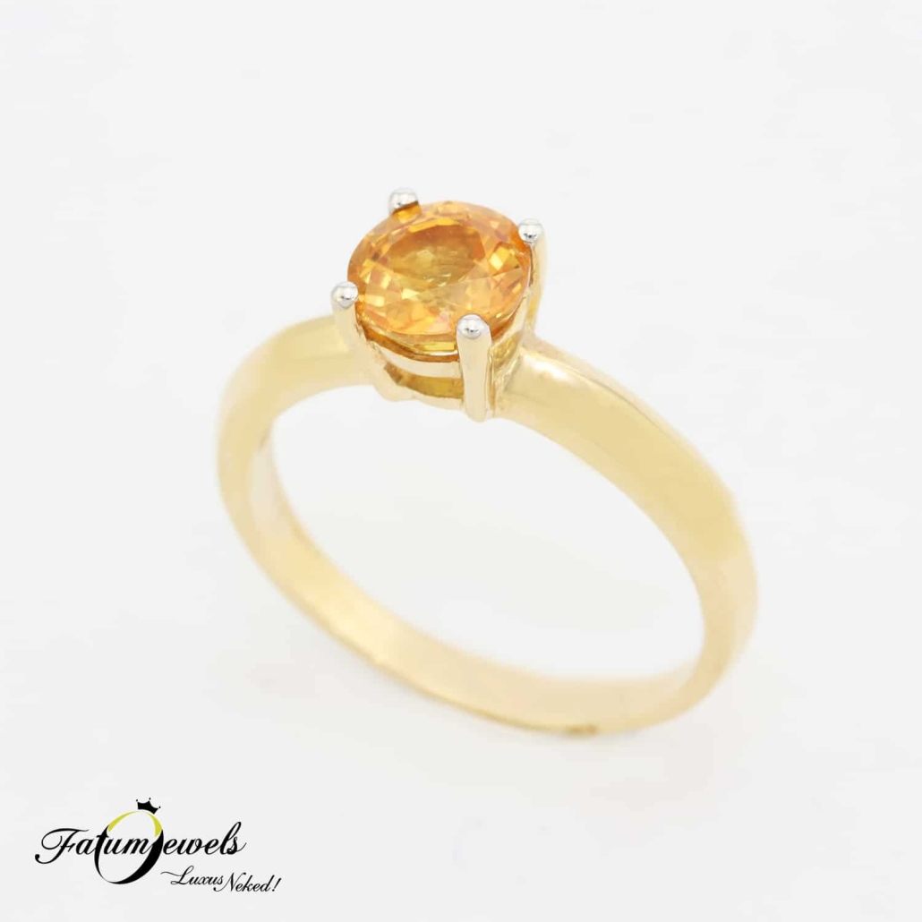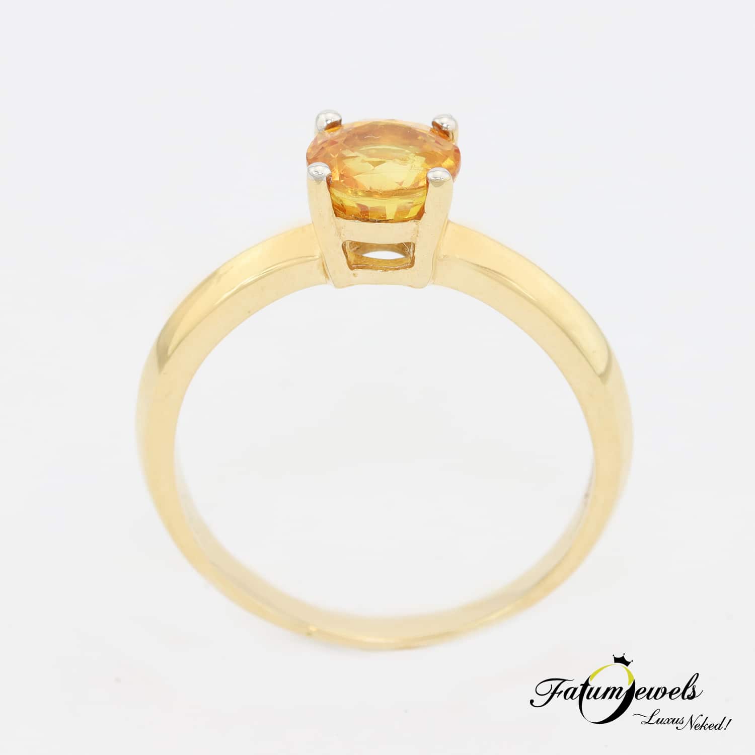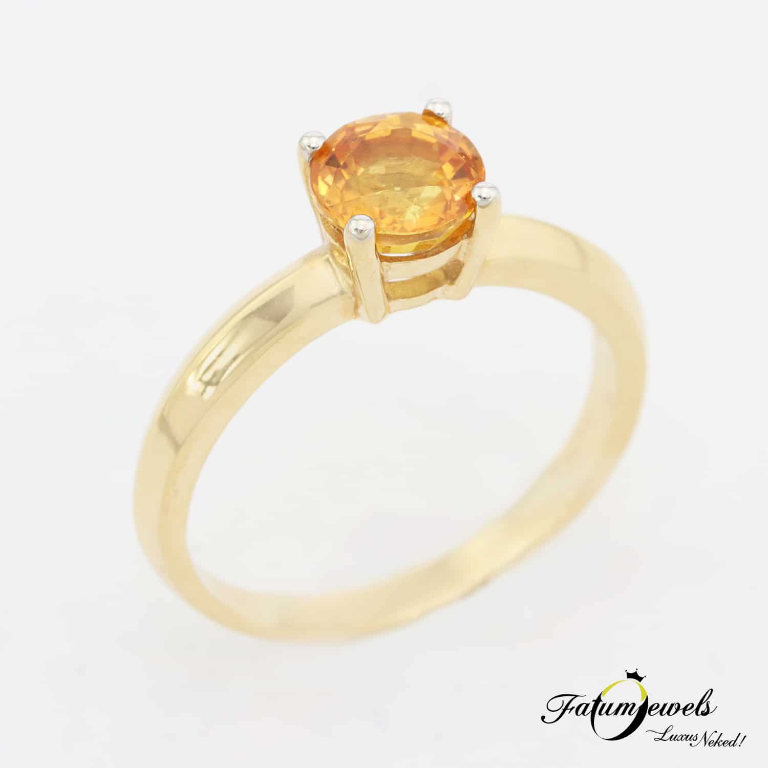 Nincs az az energikus, spirituálisan nyitott hölgy, aki ne szeretne egy 1,146 karátos kerek csiszolású sárga zafírt viselni az ujján. Ez a Fatumjewels sárga arany sárga zafír gyűrű éppen ezt nyújtja. Amennyiben kedvesed kedvenc színe a sárga akkor akár eljegyzési gyűrűként is jó választás lehet. Nem véletlen, hogy a sárga zafír divatját éljük napjainkban, hiszen ki tudna ellenállni ennek a ragyogó, extravagáns drágakőnek?
