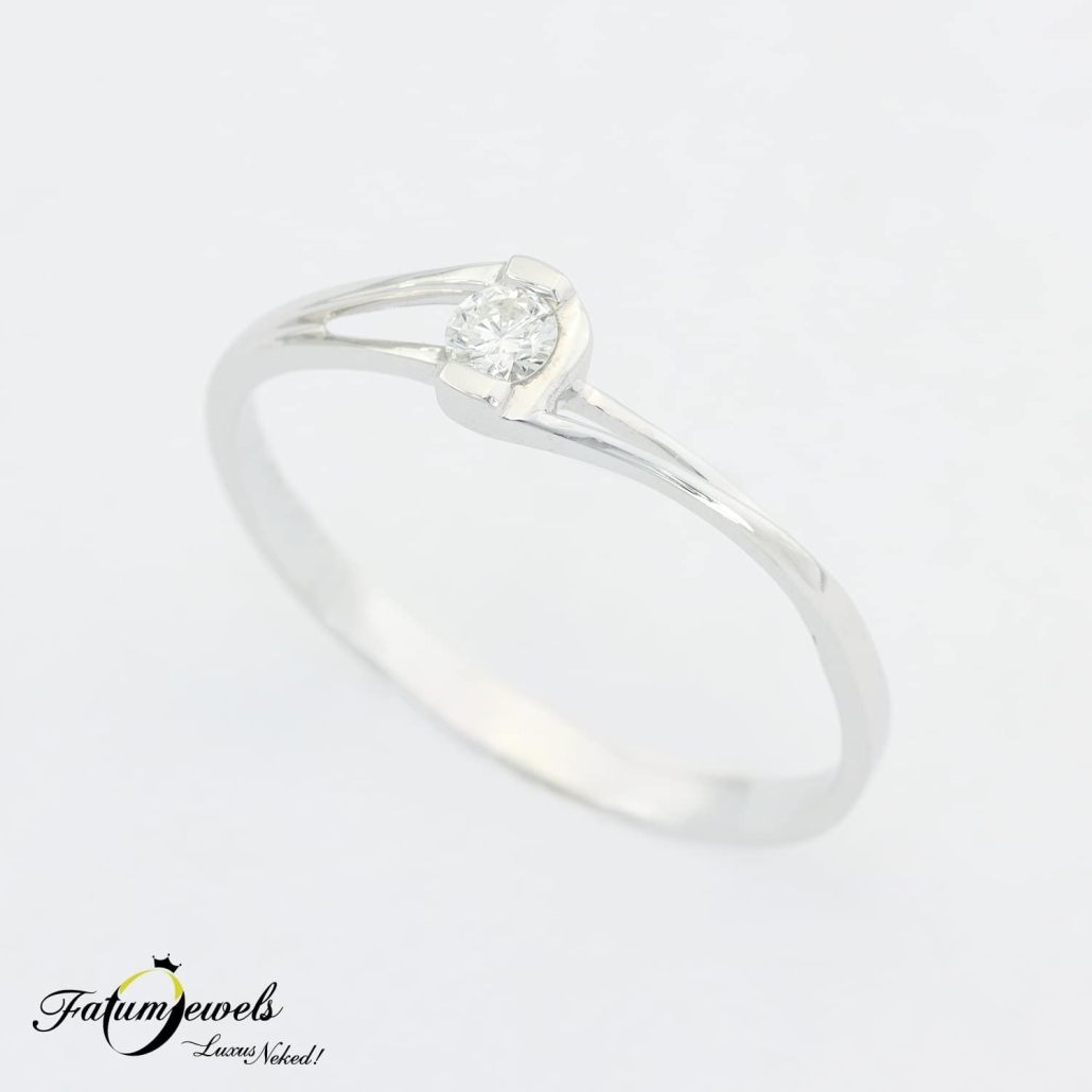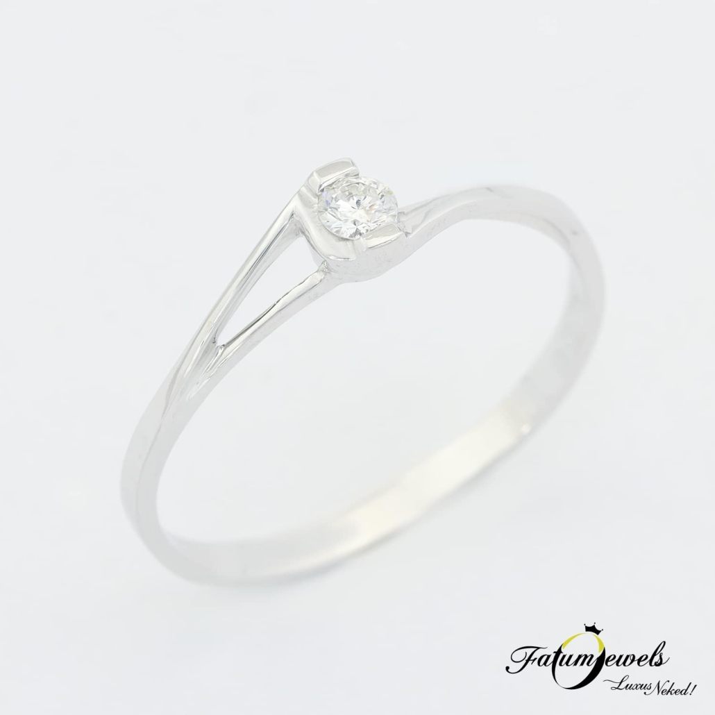 A révbe érés szimbóluma ez a Fatumjewels egyedi gyémántgyűrű, melynek ék alakjában, az érzelmek megtestesüléseként ott ragyog egy briliáns gyémánt. Ez az eljegyzési gyűrű a tökéletes példa arra, hogy visszafogott áron is tudsz egyedi ékszert ajándékozni. Fatumjewels tervezésű egyedi gyémánt eljegyzési gyűrű kedvező áron.