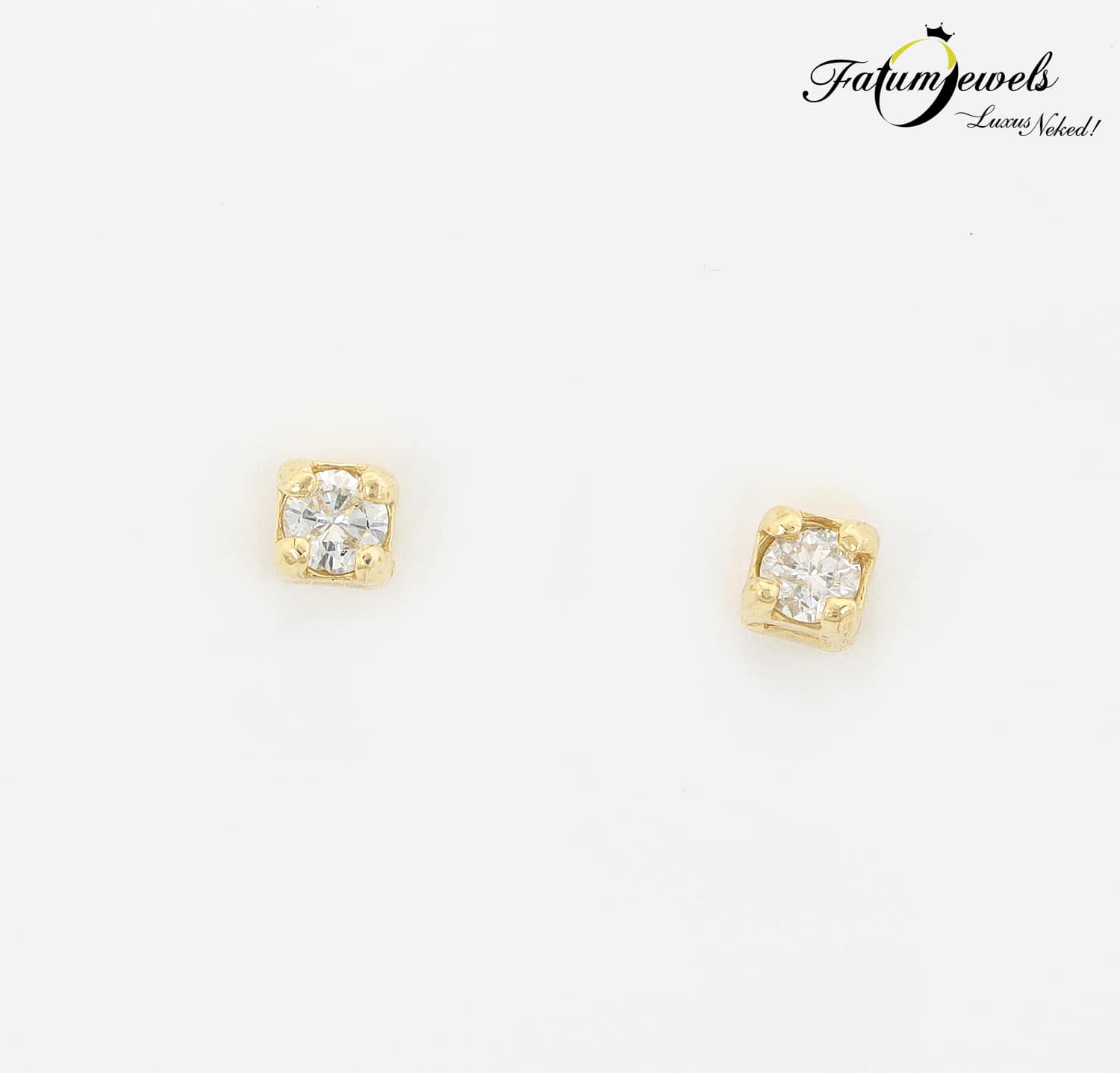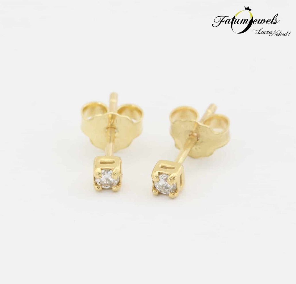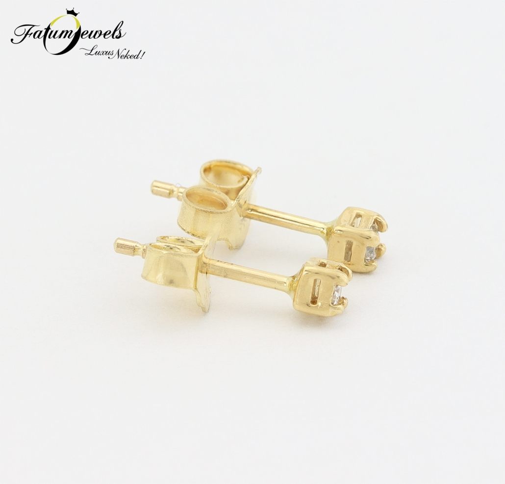 Tradicionális színösszeállítás a sárga arany és a gyémánt, mindez egy örökké divatos szoliter gyémánt fülbevaló formájában. A Fatumjewels Galéria azok számára tervezte ezt a gyémánt fülbevalót, akiknek anyagi lehetőségeik ugyan korlátozottak, de szeretik a valódi ékszereket, valódi drágakővel. Fatumjewels tervezésű szoliter fülbevaló összesen 0,09 karát gyémánttal.