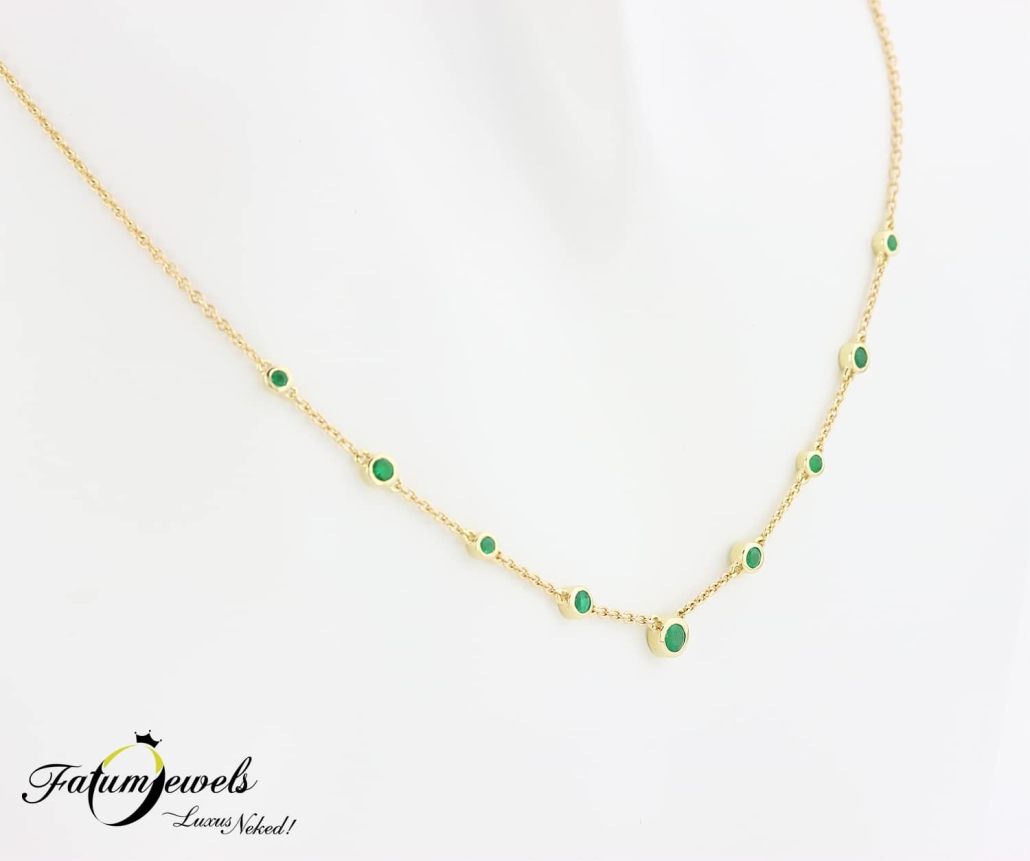 A sárga arany smaragd nyakláncot azoknak a hölgyeknek is ajánljuk, akik nemcsak az ékszert látják, hanem annak jelentését is ismerik. A smaragd ugyanis a megújulás, a harmónia és a belső béke szimbóluma, így tehát egy új életszakasz kezdetének megünneplésére is remek ajándék.