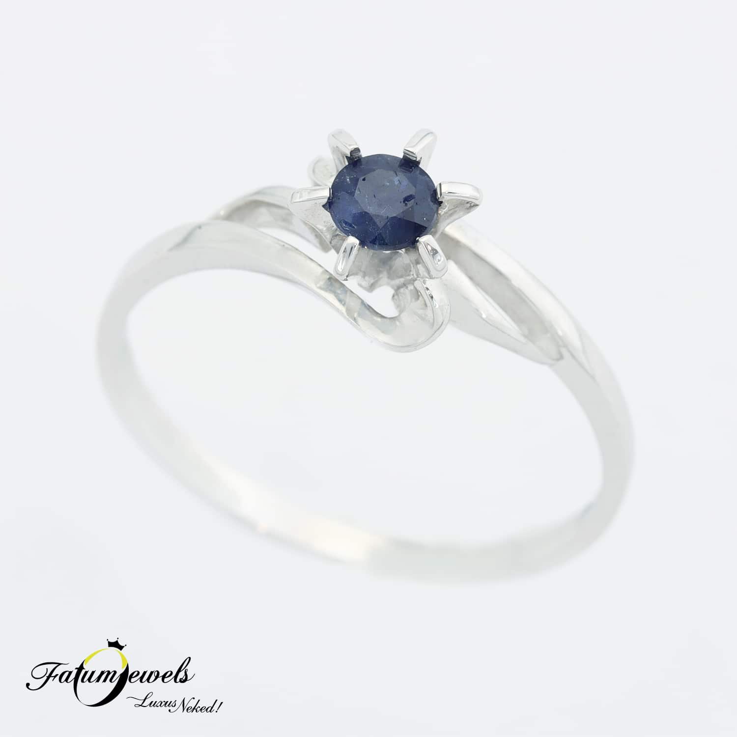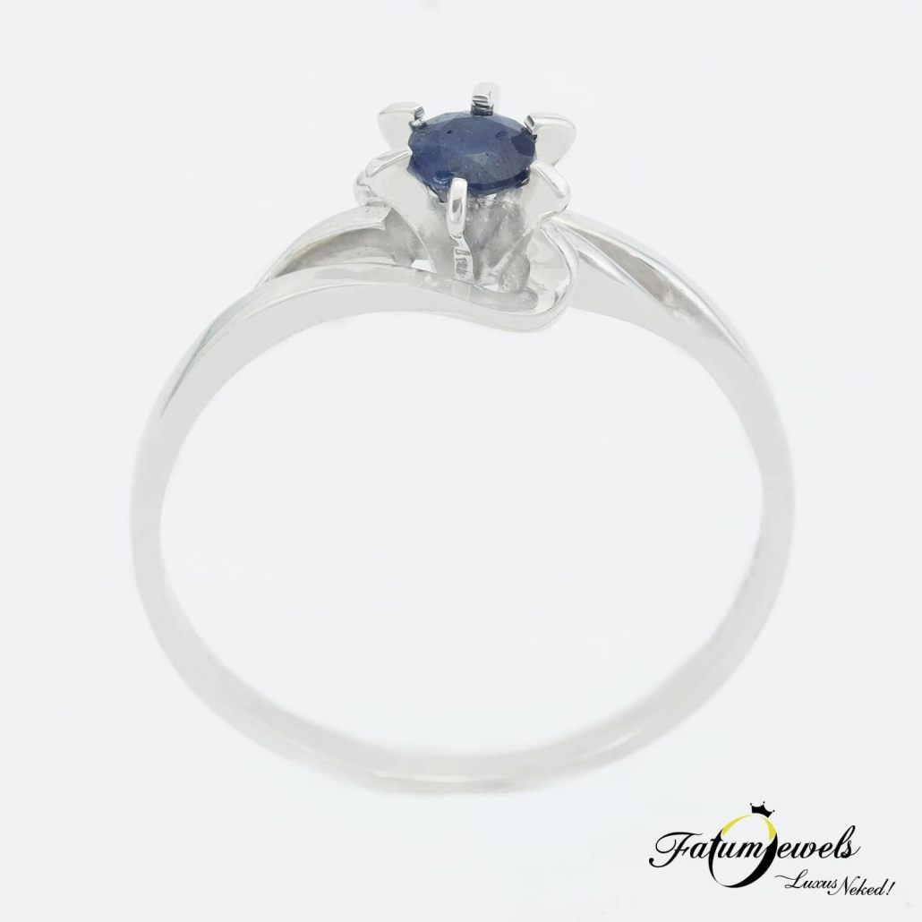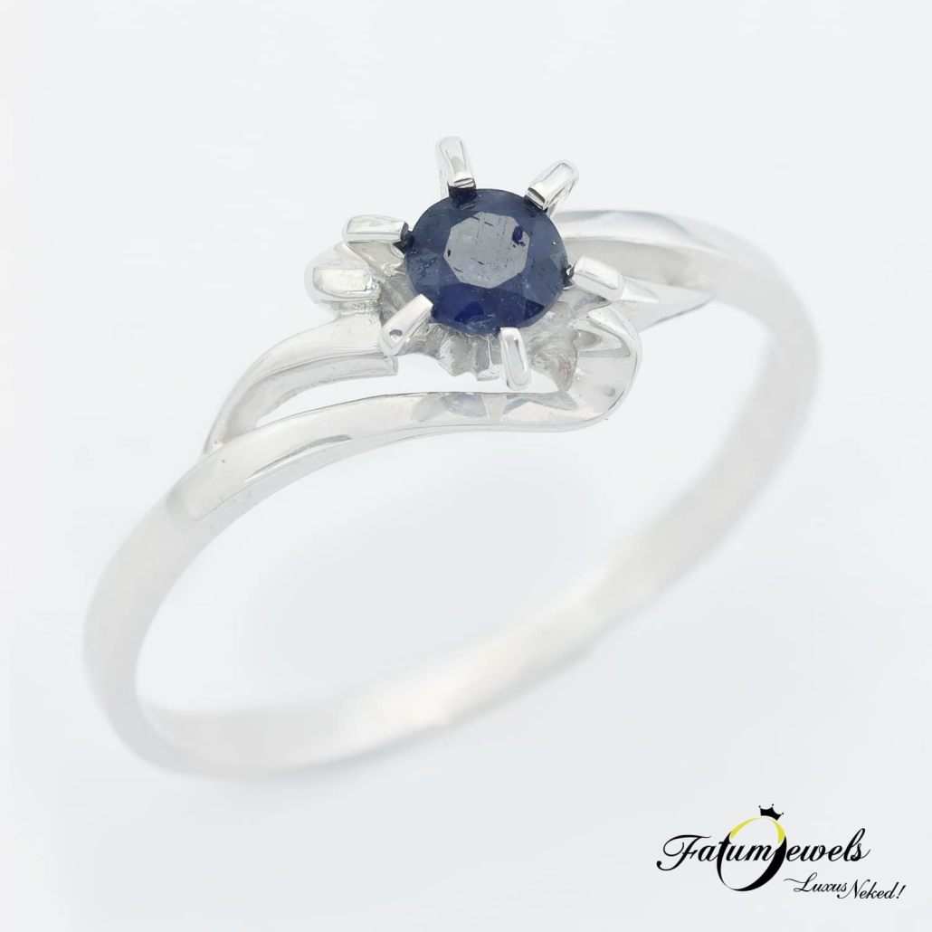 Fehérarany szirmok között ringatózó mélykék zafír. Egy gyűrű, ami egy csodás, napsütötte nyári nap emlékét hozza vissza. Esküvői gyűrűként is tökéletes választás, hiszen a tradicionális „valami kék” elengedhetetlen kiegészítő a menyasszony számára. Egyedi mélykék zafír fehérarany sziromokkal övezve Fatumjewels gyűrűben megalkotva, hogy a megjelenésed tökéletes legyen életed egyik legfontosabb napján.