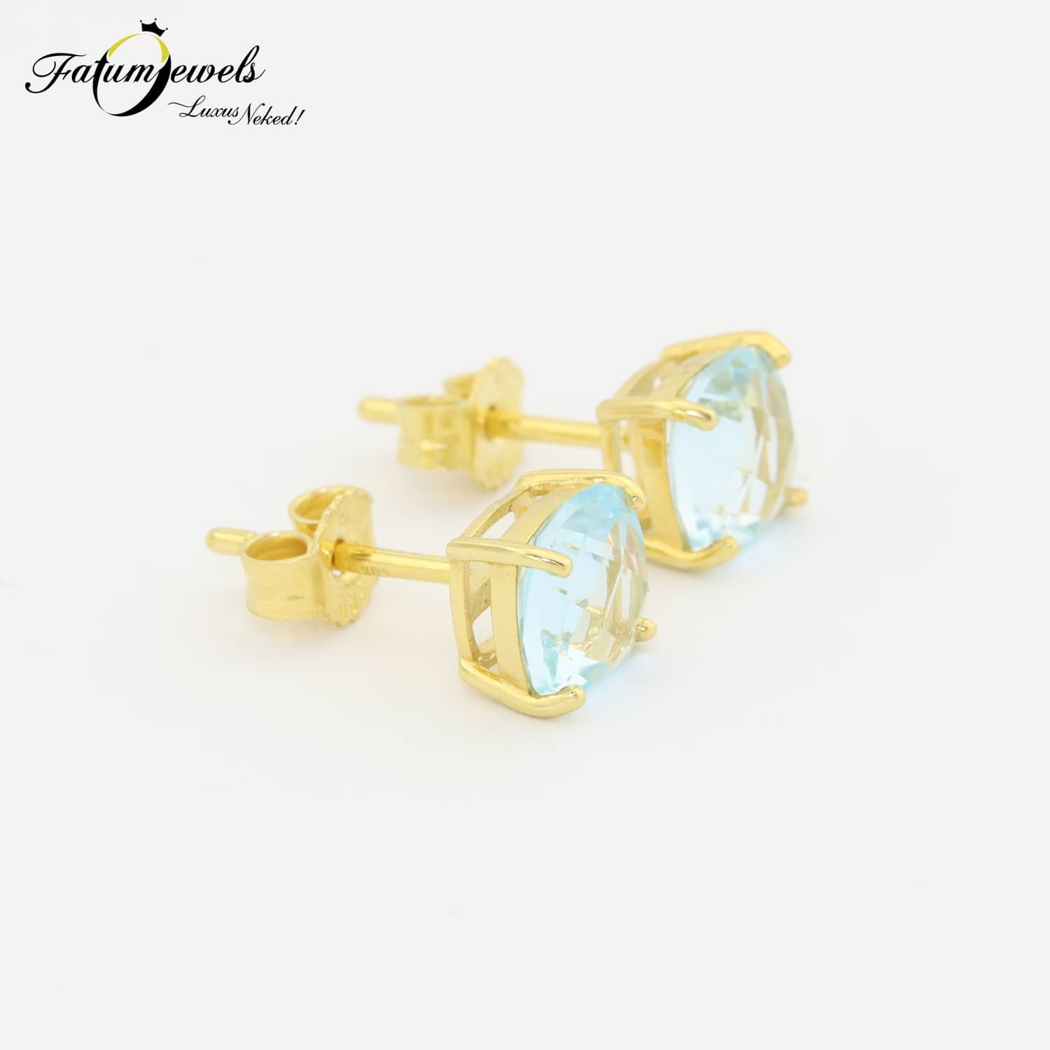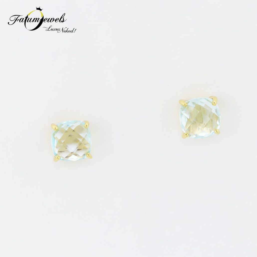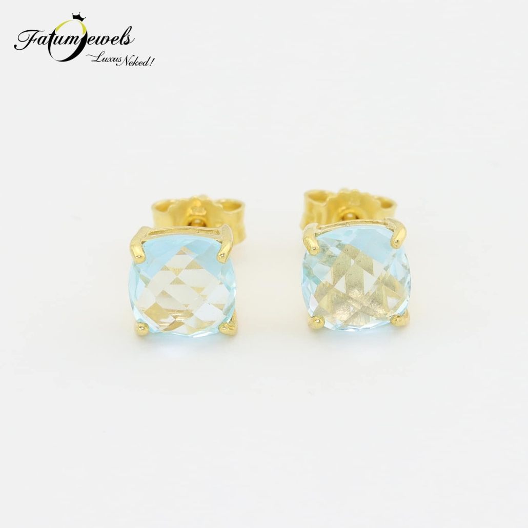 Ez a lenyűgöző sárga arany topáz fülbevaló valódi, természetes világoskék topázzal készült, amelyből egyszerre sugárzik a frissesség és a nyugalom. A 14 karátos sárga arany meleg tónusa tökéletesen kiegészíti a különleges fantázia csiszolású, ragyogó drágakövet. A finom, mégis karakteres 6×6 mm-es méret ideálissá teszi a fülbevalót mindennapi viselésre is, de ünnepi alkalmakra is jó választás lehet.