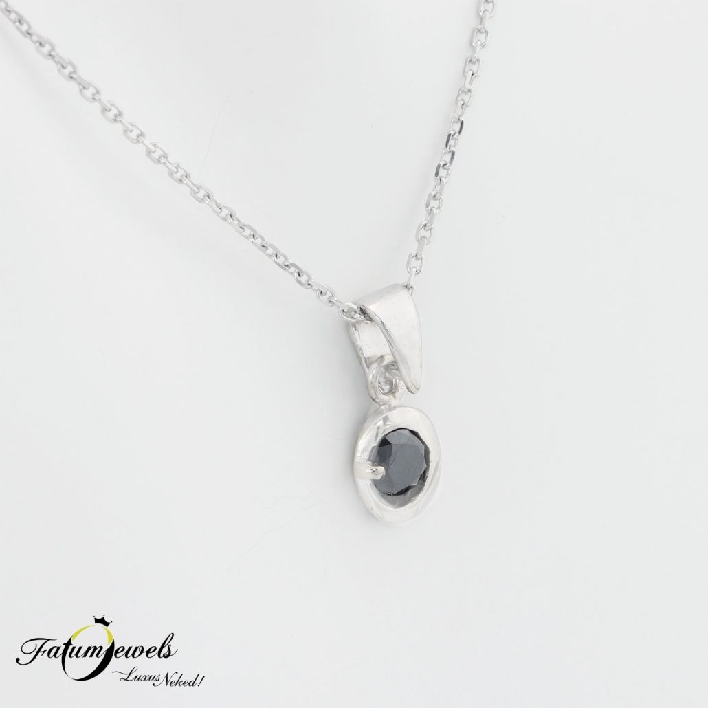 Ez a különleges fehérarany fekete gyémánt szett a letisztult elegancia és a modern finomság találkozása. A 14 karátos fehérarany alapon elhelyezett valódi fekete gyémántok visszafogottan karakteres megjelenést kölcsönöznek viselőjüknek. A fehérarany fekete gyémánt szett egy pár fülbevalóból és egy nyakláncon függő medálból áll, amelyeket az egységes forma kapcsol össze. A fekete gyémántok különleges csillogása diszkrét, de izgalmas fényt visz a megjelenésbe, olyan titokzatosságot, amely minden pillantást megragad.