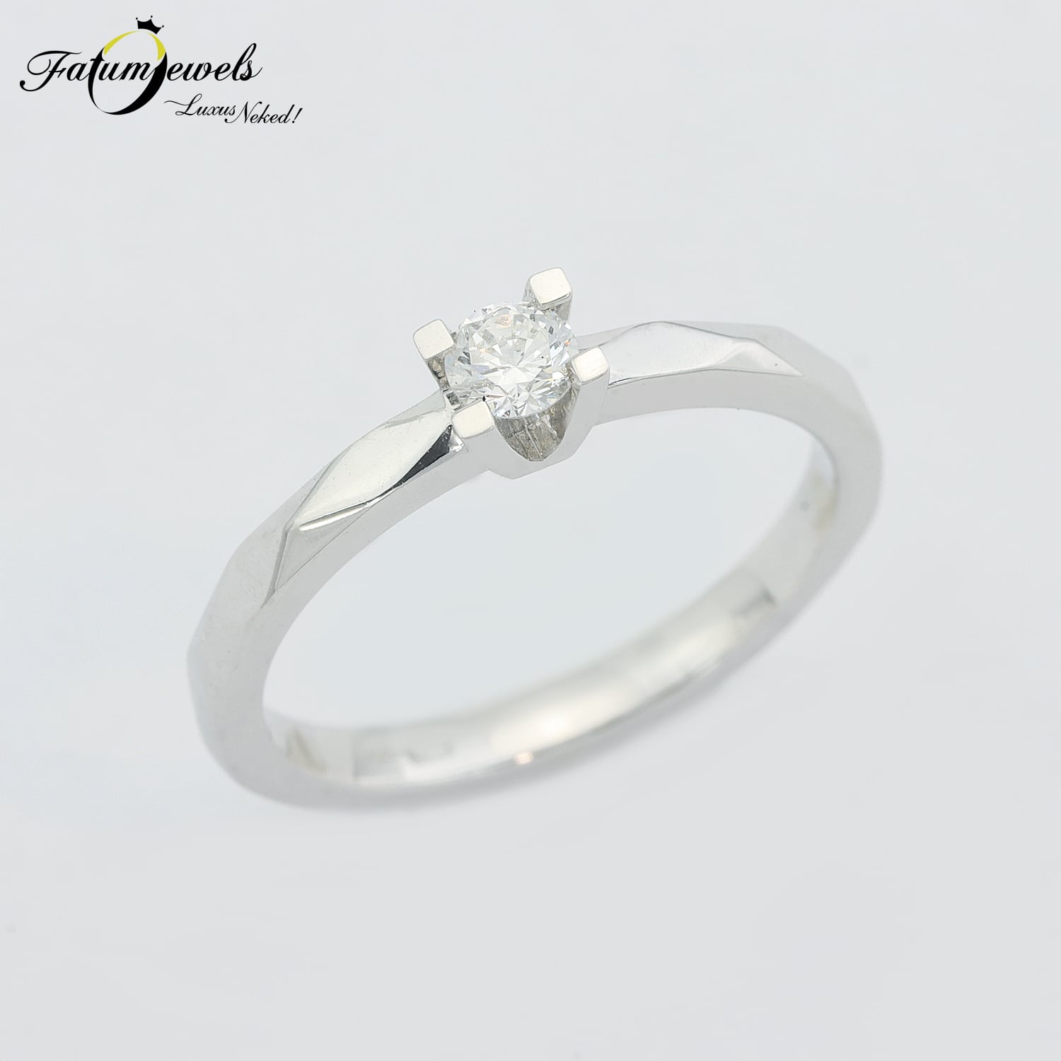 Nem szükséges tovább várnod. Akár még ma megkérheted kedvesed kezét, hiszen nálunk hozzájuthatsz valódi gyémánt eljegyzési gyűrűhöz. A 0,15 karátos fehér színű briliáns csiszolású gyémántot négy karom tartja, és a gyűrűsín egyedi geometrikus dizájn mintát kapott. A Fatumjewels Galéria gondol azokra, akik meglehetősen impulzívak és szeretnék azonnal végrehajtani, amit elterveztek. Egyedi fehérarany gyémánt eljegyzési gyűrű a Fatumjewels kínálatából.