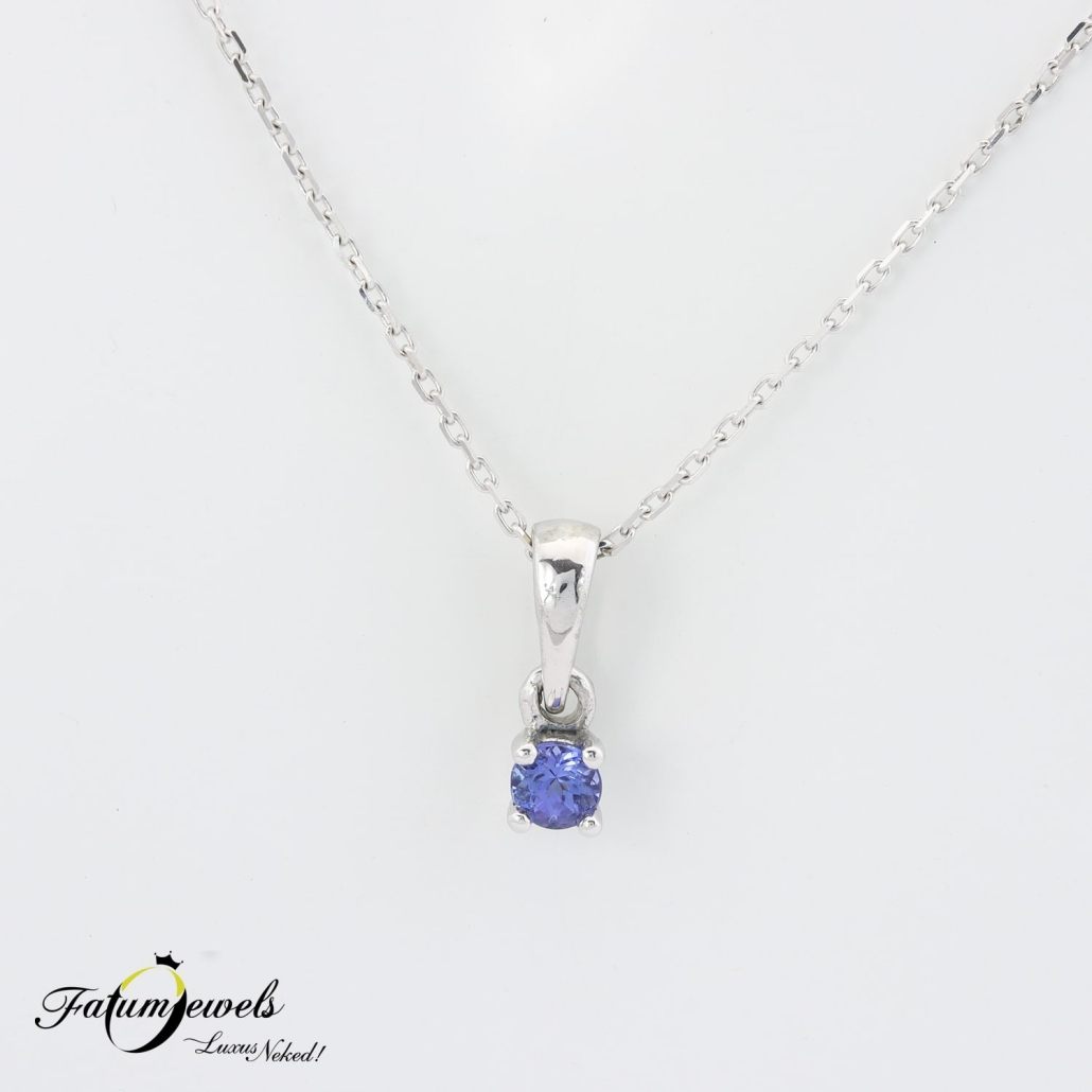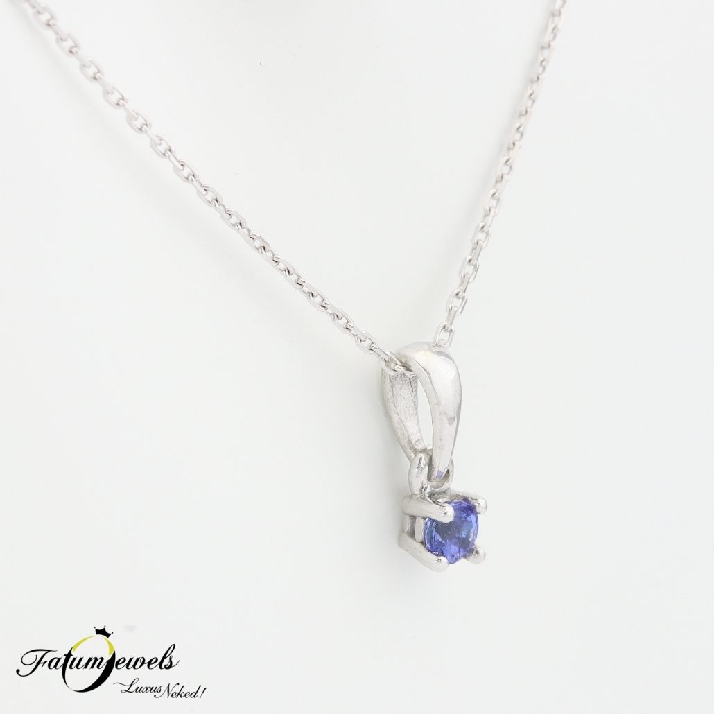 Tudtad, hogy a meseszép tanzanit a világ legritkább drágaköve? Nem is érdemel más „társaságot” ez a 0,15 karátos kerek csiszolású drágakő mint egy 18 karátos fehérarany foglalatot és láncot. Ez az egyedi Fatumjewels gyémánt tanzanit medál elképesztő szépségével azt a hölgyet is különlegessé teszi, aki viseli. Szikrázó szépsége valóban rabul ejt.