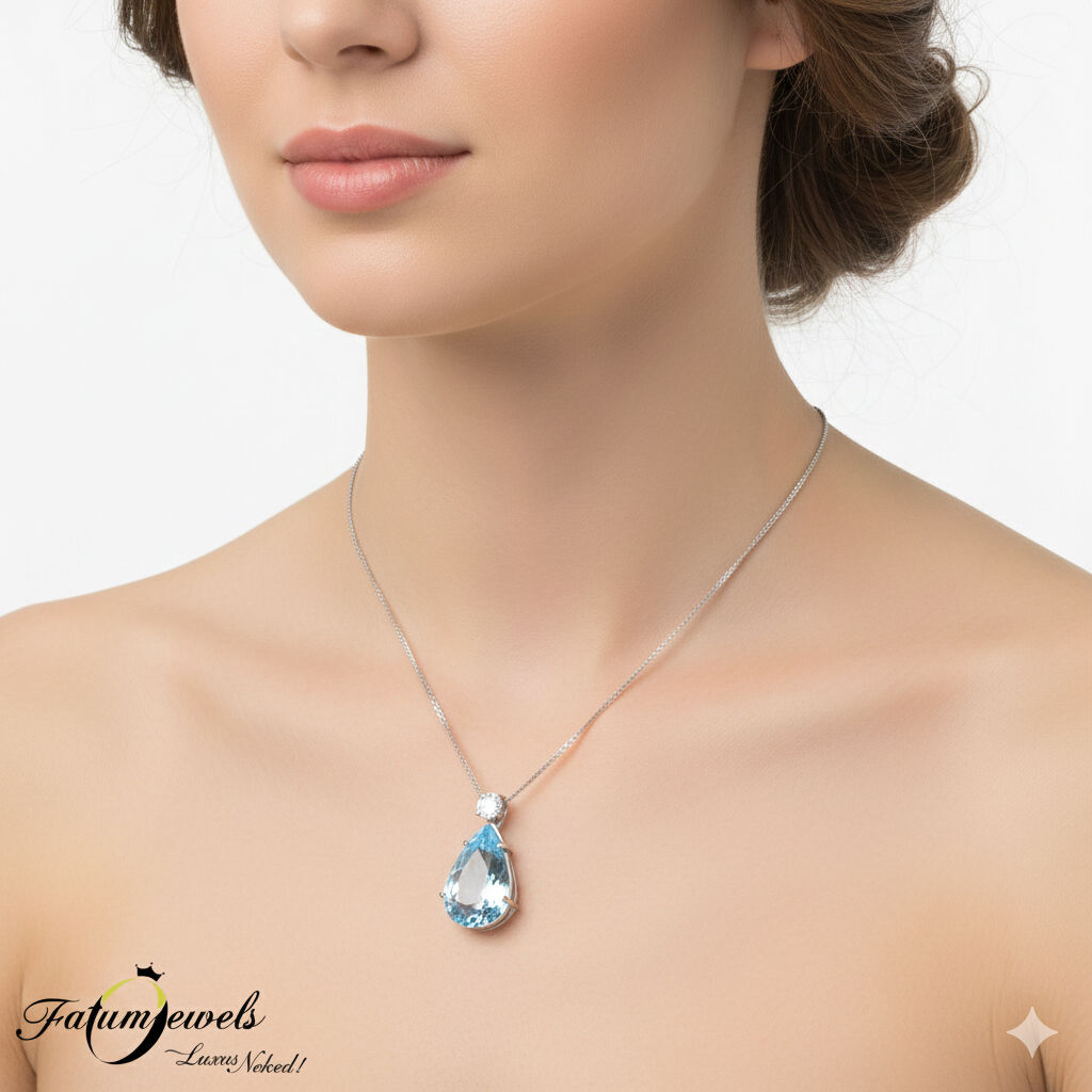 Fehérarany Gyémánt Topáz Medál Lánccal