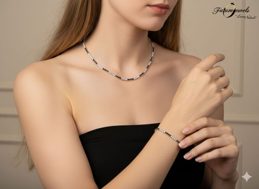 Fehérarany Fehér és Fekete Tenisz Gyémánt Szett
