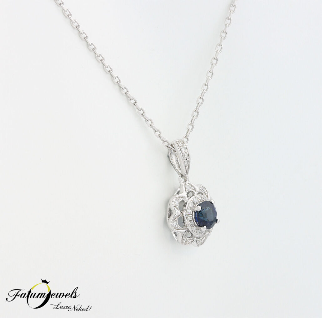 Fehérarany Gyémánt Zafír Medál Lánccal