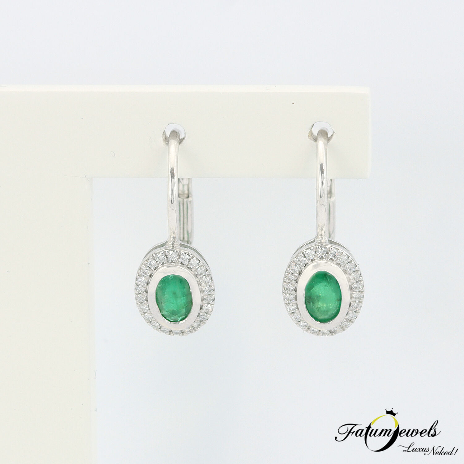 Fehérarany Patentzáras Gyémánt Smaragd Fülbevaló
