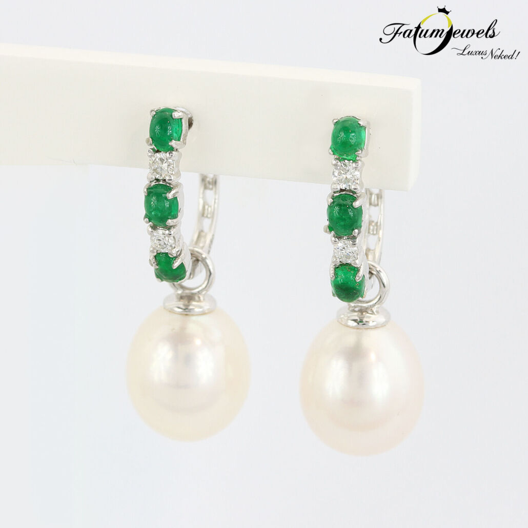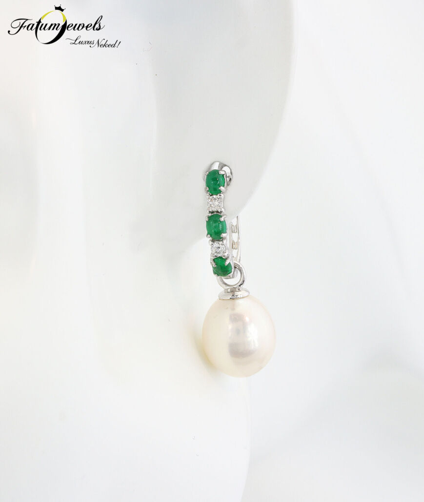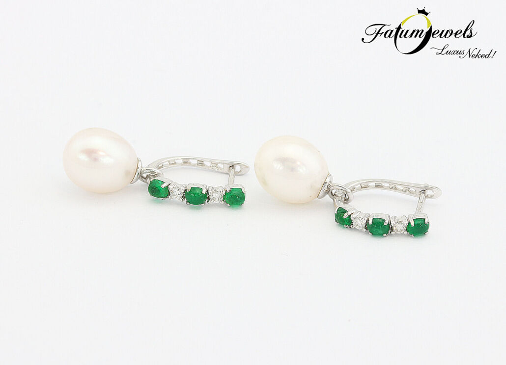 Fehérarany Smaragd Gyémánt Gyöngy Fülbevaló