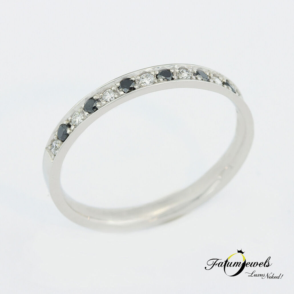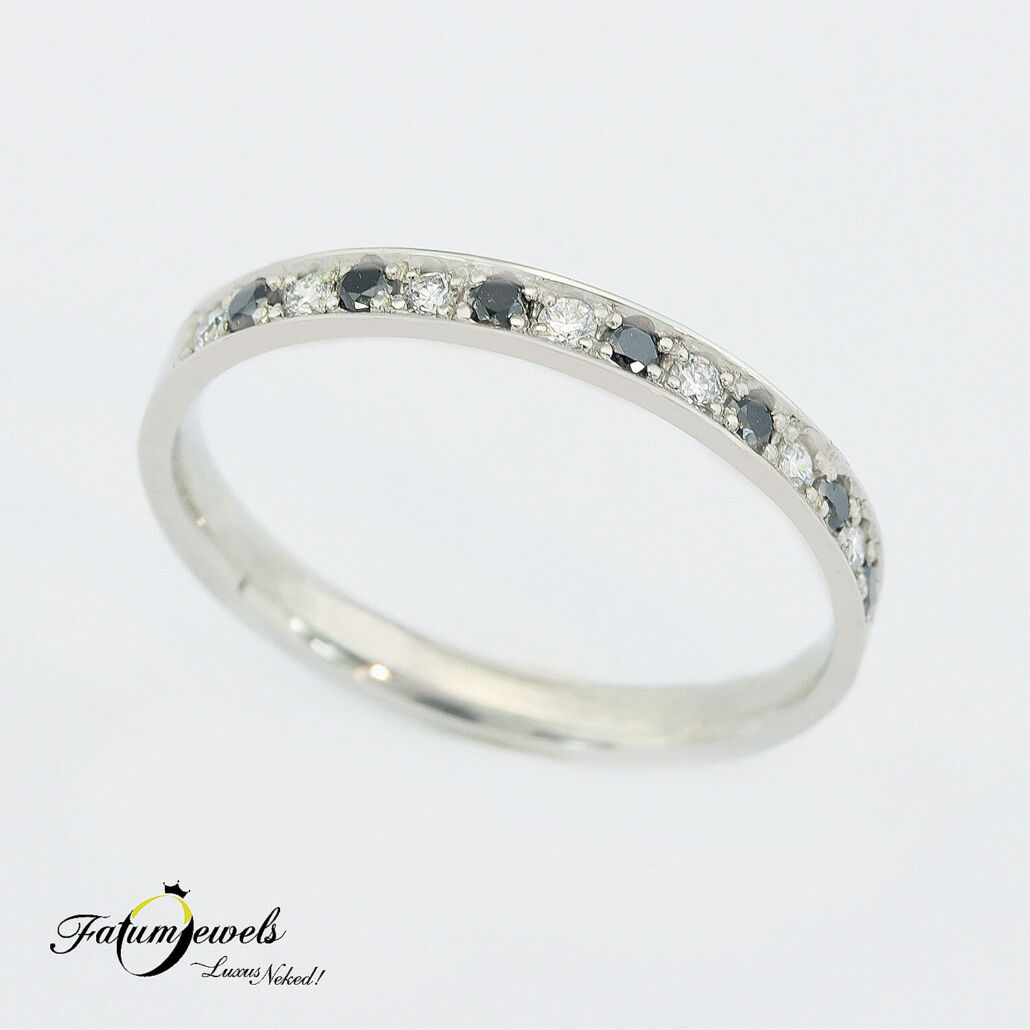 Fehérarany Fekete és Fehér Gyémánt Sorgyűrű