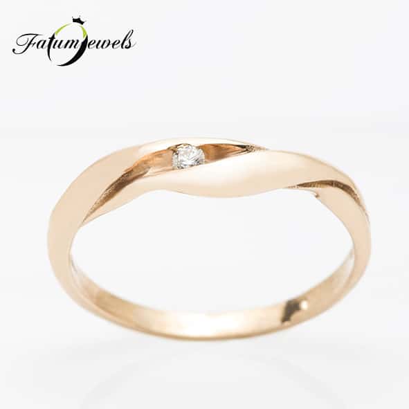 Halvány rózsaszín aranyszalaggal körbetekert gyémántgyűrű. Romantikus rozé arany gyűrű csavart kialakítással egy briliáns gyémánt drágakővel. Akár eljegyzési gyűrűként is jó választás lehet. Mindez meglepően alacsony áron elérhető a Fatumjewels Galéria rozé arany ékszer palettáján. Kedves meglepetés ajándékot keresel? Esetleg eljegyeznéd kedvesedet, de a lehetőségeid korlátozottak? Ez a rozé arany gyémántgyűrű megfelelő választás lesz.