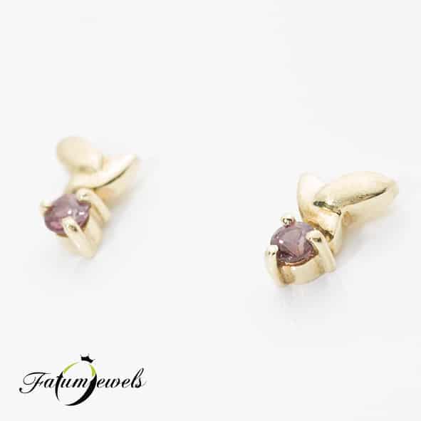 Igazi meglepetés ajándék lesz ez a gránát fülbevaló, mely jókedvet, életörömöt és játékosságot sugároz magából. A sárga arany masnivégek, melyek akár apró szárnyacskák is lehetnek, csodás keretet adnak a két briliáns csiszolású rózsaszín gránát drágakőnek. Egyedi tervezés, tehát az ajándék is egyedi. Az ára kedvező, tökéletes meglepetés ajándék lehet.