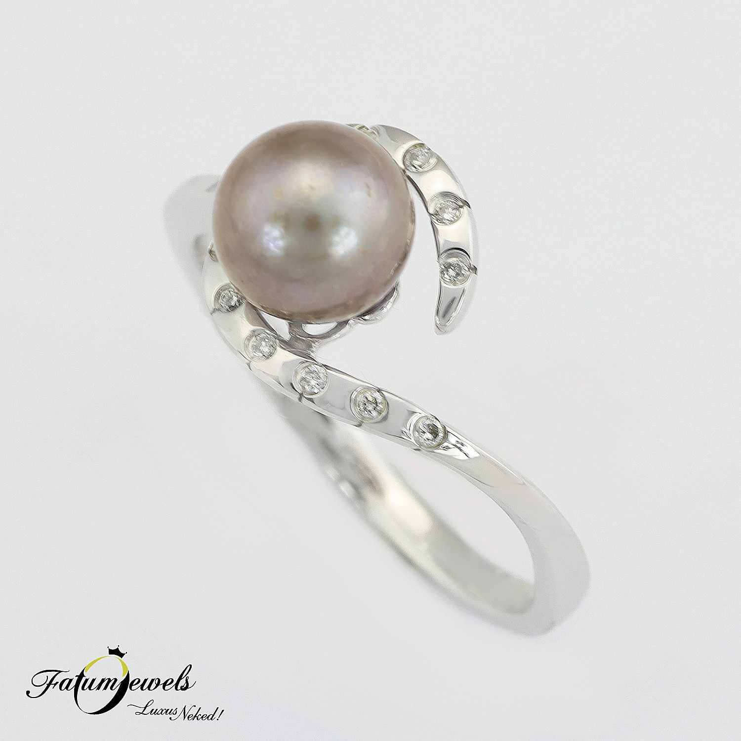 Fehérarany Gyémánt Gyöngy Gyűrű
