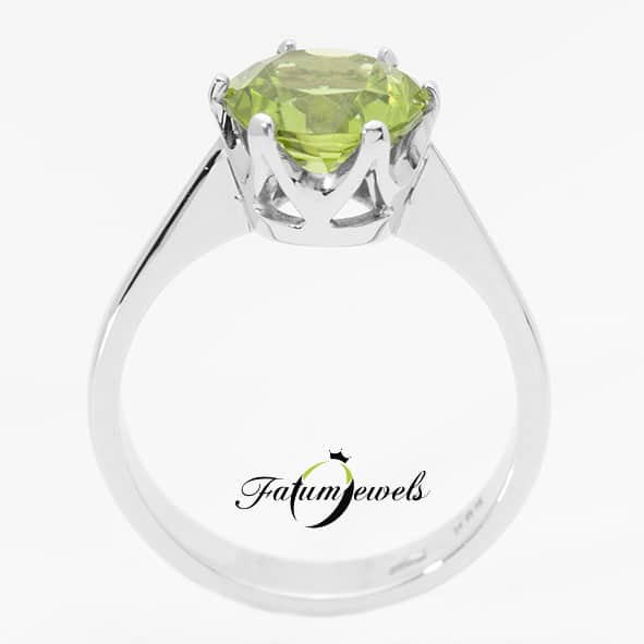 A peridot egyensúlyt teremt a szív és a személyes erő között. Segít összeegyeztetni a szíved hangjait az akaraterőd irányával. Megfelelő erőt teremt számodra, hogy akár hegyeket mozgass meg, mindemellett harmóniát teremt. Ez a Fatumjewels Galéria által tervezett fehérarany gyűrű egy igazán nagyméretű peridot drágakő díszítést kapott.