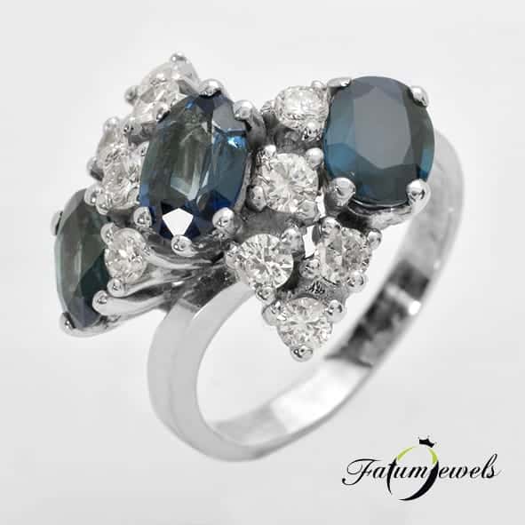 Charleston Fehérarany Gyémánt Zafír Gyűrű