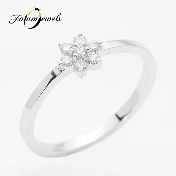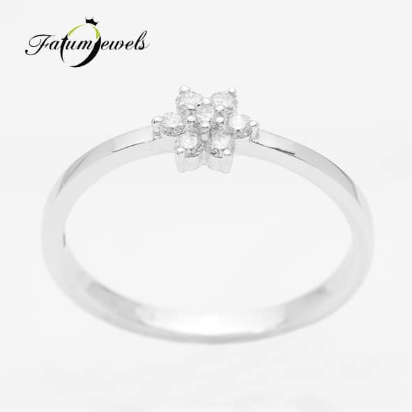 Briliáns gyémánt drágakövekből alkotott csillag díszíti ezt a Fatumjewels Kiscsillag fehérarany gyémántgyűrűt, mely eljegyzési gyűrűként is tökéletes választás lehet. Az egyenes vonalvezetésű gyűrű még jobban kihangsúlyozza a gyémántcsillag finom kecsességét. Finom lelkületű, visszafogott hölgyek számára ajánlott. Fatumjewels gyémántgyűrű a valódi szépség jegyében.