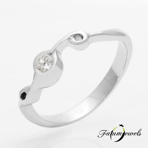 Erőteljesen önkifejező gyémántgyűrű a Fatumjewels Galériától zenekedvelő hölgy számára tervezve. A fehérarany Violin gyémántgyűrű valódi violinkulcsot formáz, közepén egy briliáns gyémánt drágakővel. Különlegeset, egyénit, kifejezőt keresel? Olyan ékszer a vágyad, mely megmutatja a zene iránti szenvedélyedet? A Fatumjewels Violin gyémántgyűrű pontosan erre lett tervezve.
