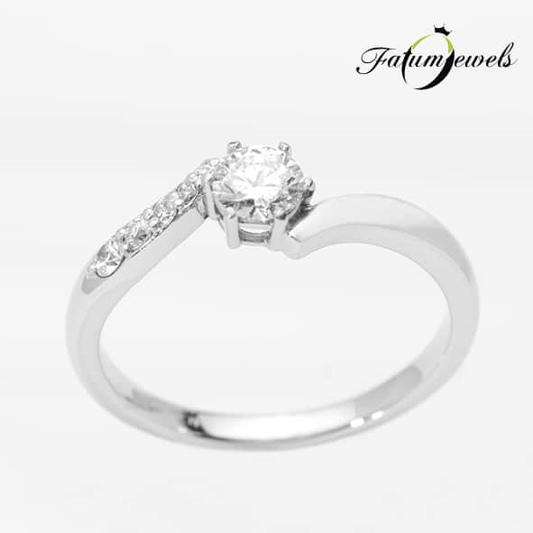 A Feminine gyémántgyűrű hajlékony nőies formái szinte megmozdulnak. Szinte látjuk magunk előtt a kecses hajladozást, azt a pillanatot, melybe belefagyott a fehérarany és a gyémánt. Modern formatervezés modern hölgyek számára a Fatumjewels Galéria eljegyzési gyűrű választékában, kifejezetten igényes menyasszonyok számára tervezve.