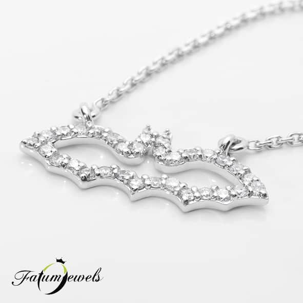 Képregény-rajongók figyelmébe ajánlott ez a Fatumjewels fehérarany denevér medál nyaklánccal. A denevér kontúrját briliáns gyémánt drágakövek díszítik. Ballagásra is kitűnő ajándék Batman-rajongó tinédzserek számára. Azok számára is valódi meglepetés lehet, akik szeretik a denevéreket, a természetet, és a valódi ékszereket.