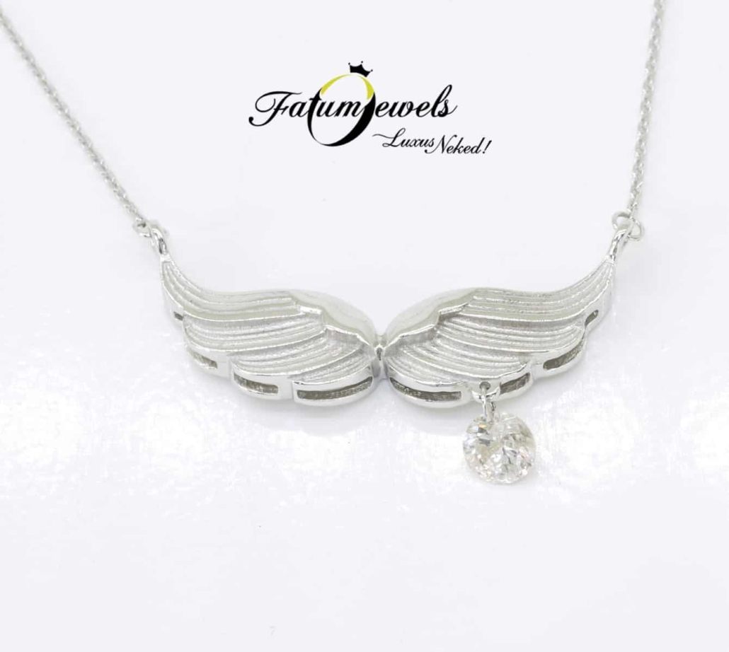 Kecses Angyalszárny fehérarany medál egy briliáns gyémánt drágakővel díszítve, fehérarany nyaklánccal a Fatumjewels Galéria ajánlásával angyali teremtések számára. Amennyiben megfelelő ajándékötletet keresel, megtaláltad. A valódi ékszer az egyik legszebb ajándék, a gyémánt pedig minden hölgy barátja. Fatumjewels gyémánt medál nyaklánccal.