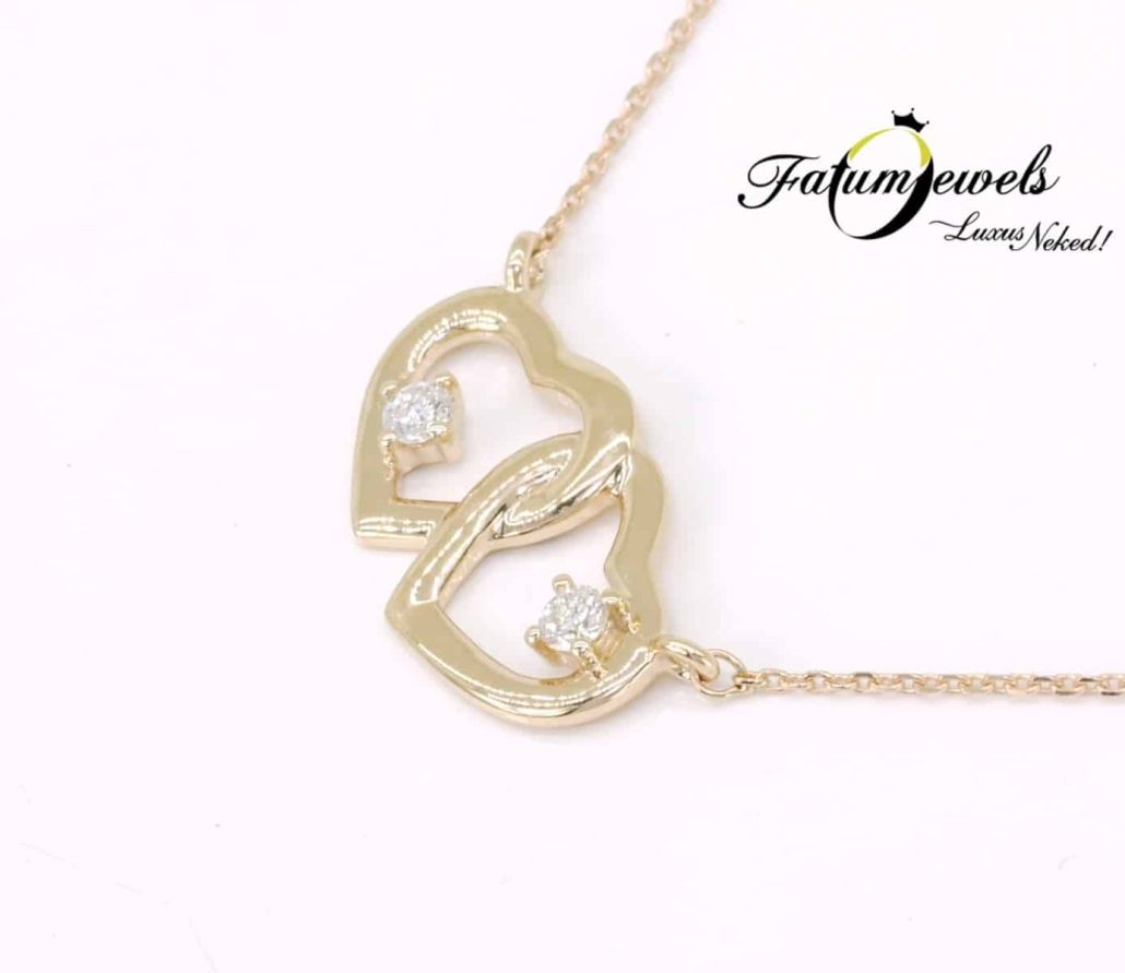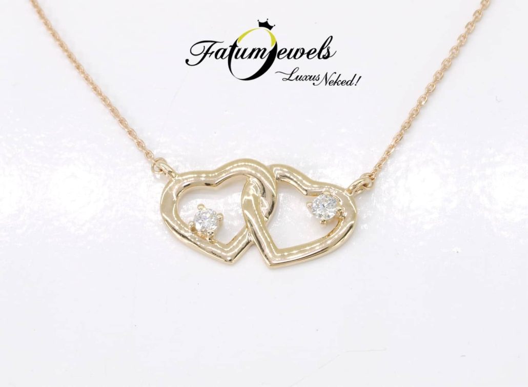Igen kedvező áron elérhető a Fatumjewels Galéria romantikus ékszer kínálatában ez a rozé arany Iker Szív gyémánt medál, mely pontosan azt fejezi ki, amit látunk. A két szív összefonódik, mindkettőben megbújik egy briliáns gyémánt. Kedves romantikus ajándék bármely alkalomra.
