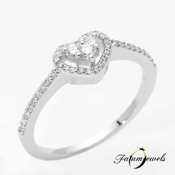 Sziporka Szív gyémánt eljegyzési gyűrű romantikus lánykéréshez a Fatumjewels Galéria ajánlásával. Elsősorban romantikus lelkületű hölgyek számára lesz kitűnő eljegyzési gyűrű ez az ékszer. 0,26 karát briliáns gyémánt alkotta szív ragyogása tesz gyönyörűvé minden egyes napot a lánykérést követően.