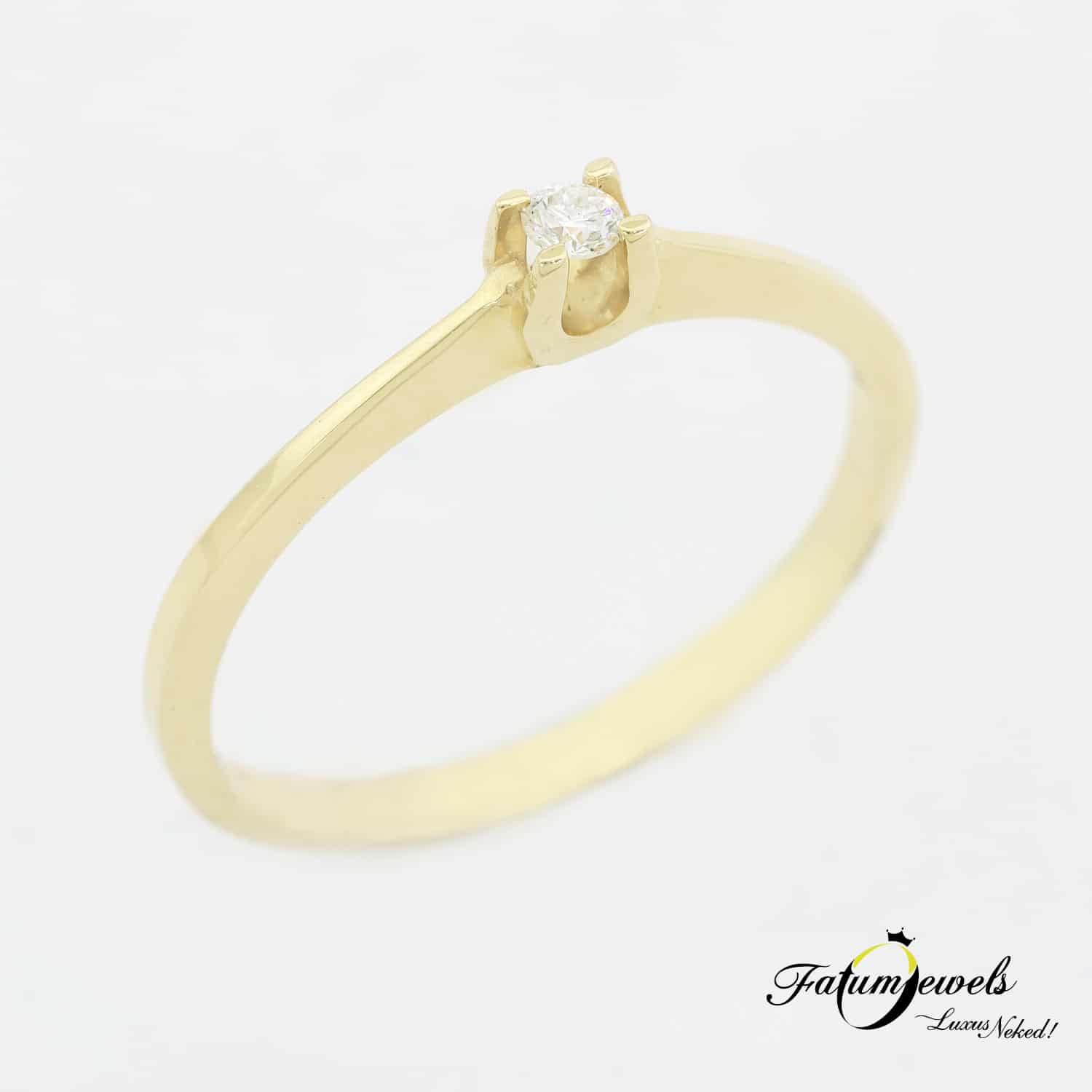 Ez a sárga arany gyémánt eljegyzési gyűrű egyszerre képvisel klasszikus eleganciát és modern designt, így ideális választás a lánykérés felejthetetlen pillanatához.